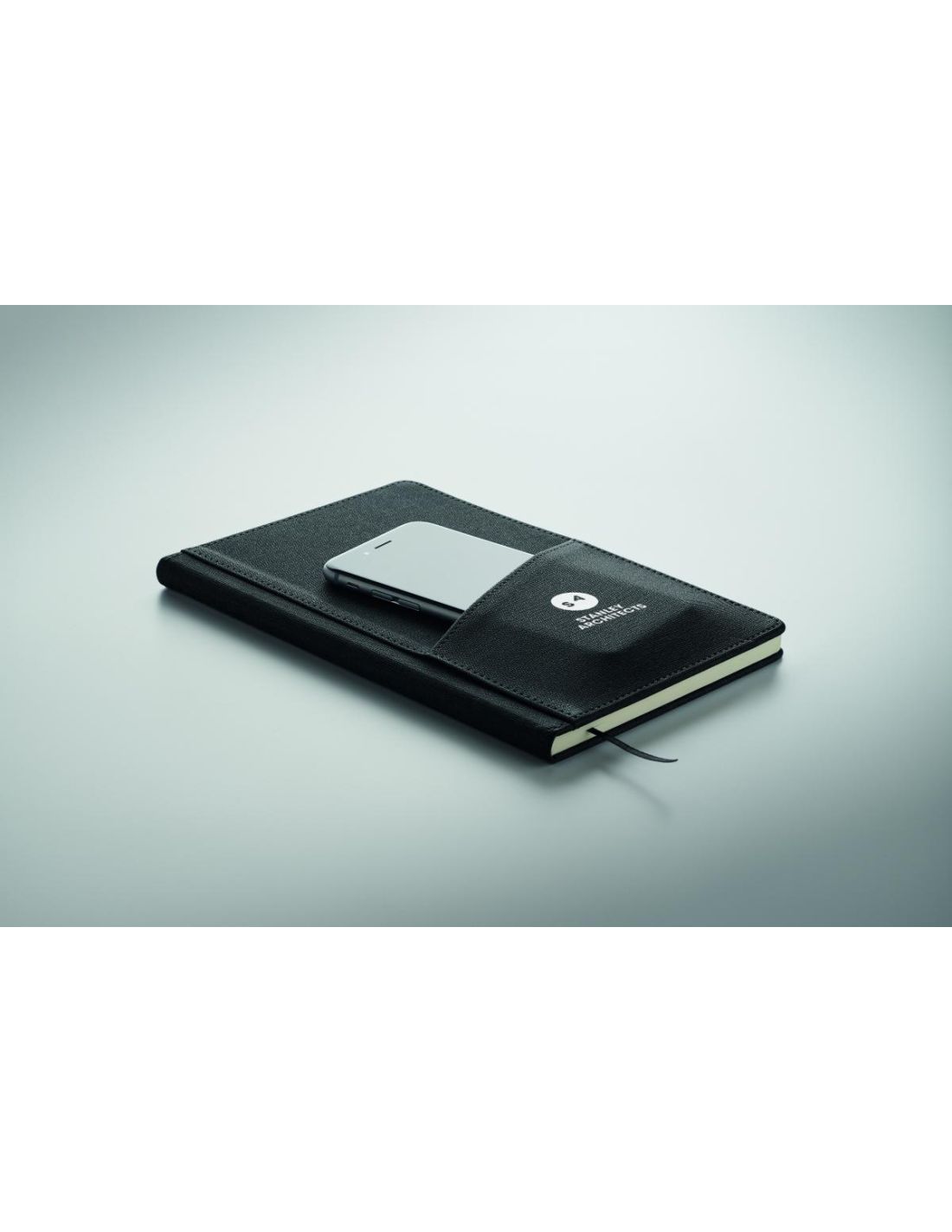 Set de regalo de 3 piezas en caja de regalo. Incluye bolígrafo giratorio de metal con detalle de poliéster RPET, cuaderno de tapas duras RPET con bolsillo frontal para smartphone y llavero de poliéster RPET. Tinta azul. FSC MIX CREDIT | P7.1 | FSC-C213206