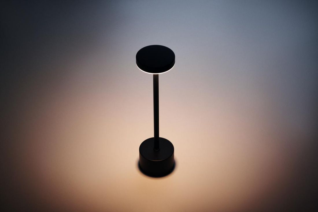 Lámpara de sobremesa de aluminio con 24 LED, 3 modos de iluminación y control táctil. Dispone de regulación continua y batería de iones de litio recargable de 1200 mAh con 6 horas de uso.