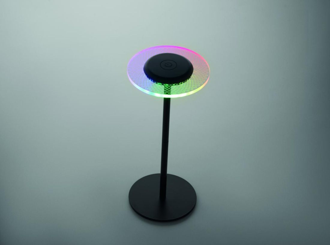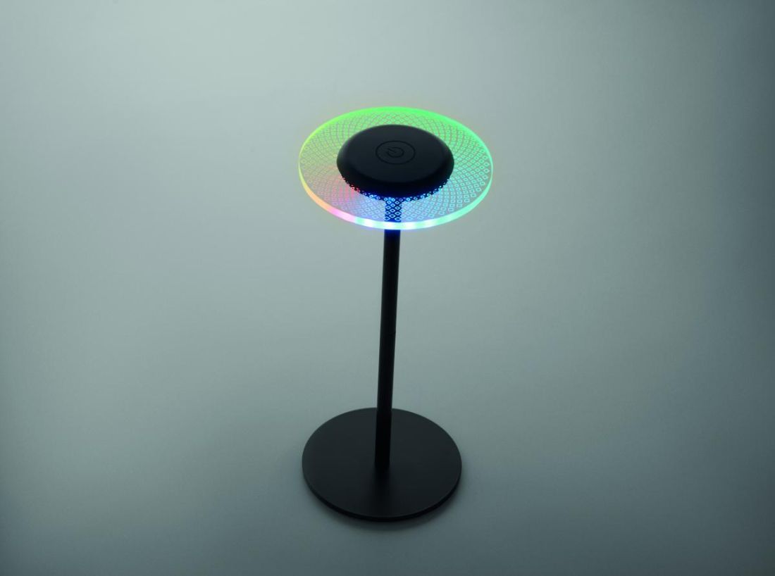 Lámpara de mesa RGB recargable de hierro con 39 luces LED y regulación continua de intensidad. Elige luz cálida o cambio de color. Batería integrada de 2000 mAh de hasta 6 horas de autonomía.