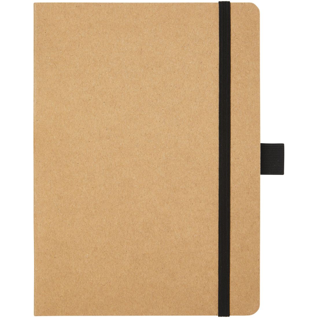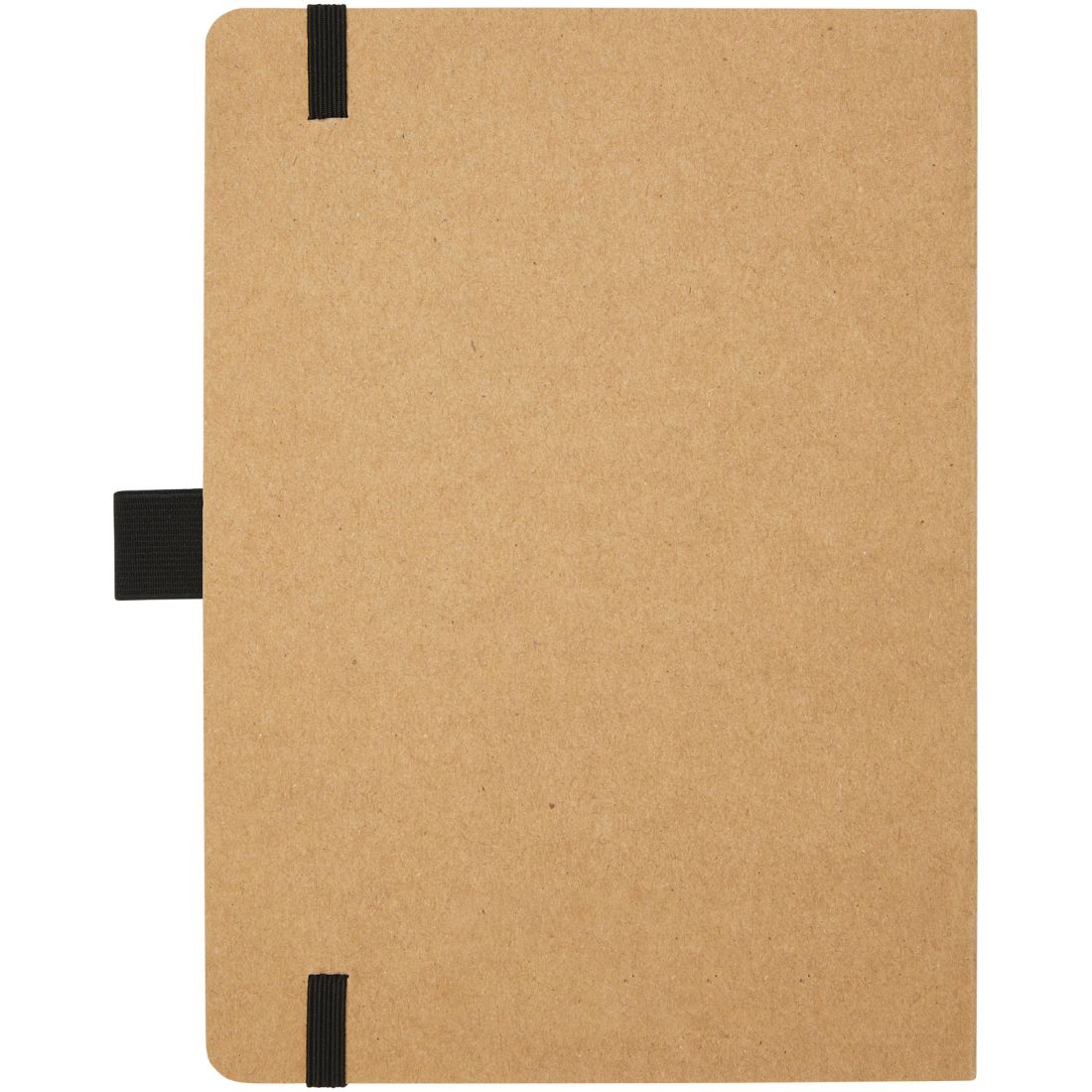 Libreta de papel con líneas reciclado (70 g/m²) 80 hojas con esquinas redondeadas, elástico de color y un soporte para bolígrafo que combina con los tonos del modelo 107384.
