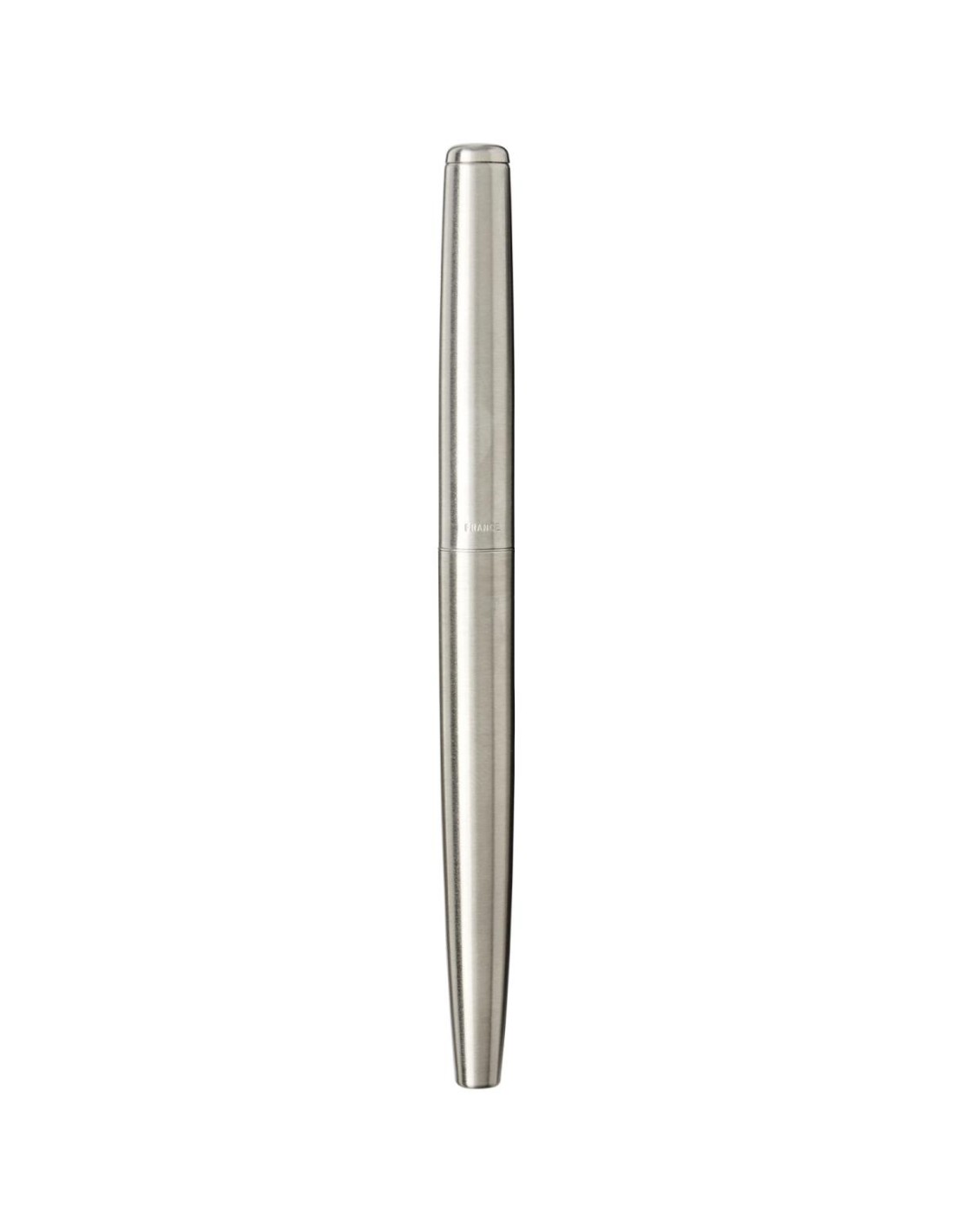 La pluma estilográfica es una versión moderna del emblemático modelo original. Con plumín de acero inoxidable, cuerpo cromado, capuchón de acero inoxidable pulido y clip de flecha. Se entrega en una preciosa caja de regalo .