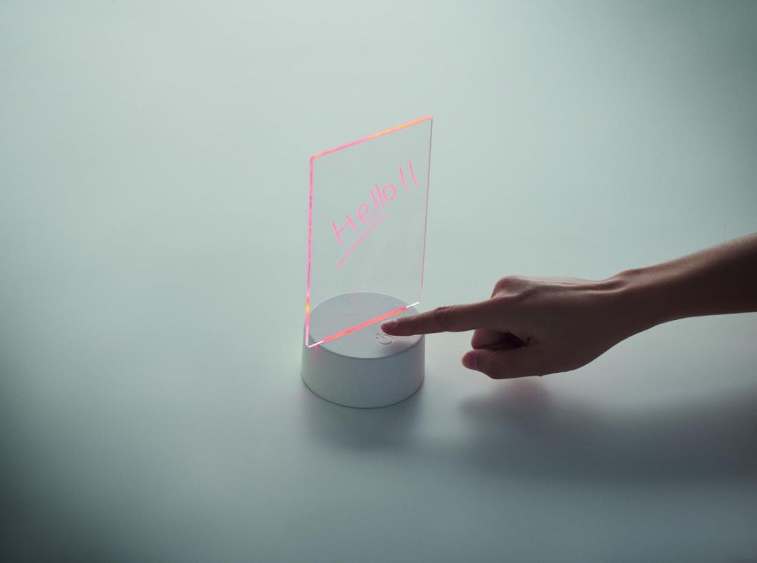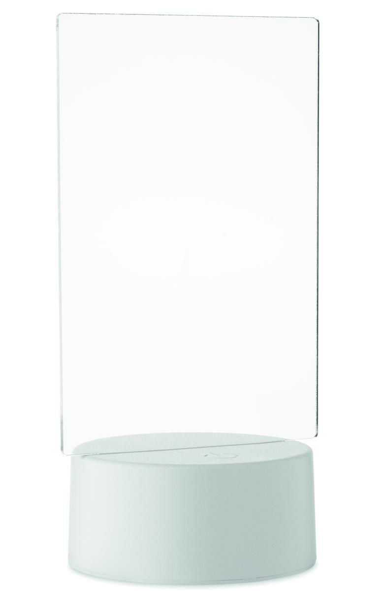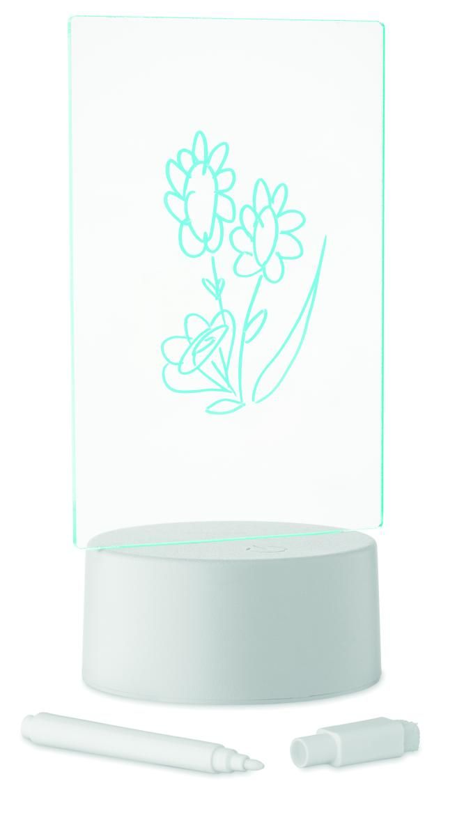 Pizarra de notas LED con luz que cambia de color y rotulador blanco borrable. Pizarra acrílica y base de PS. Funciona con pilas, requiere 3 pilas AAA (no incluidas).