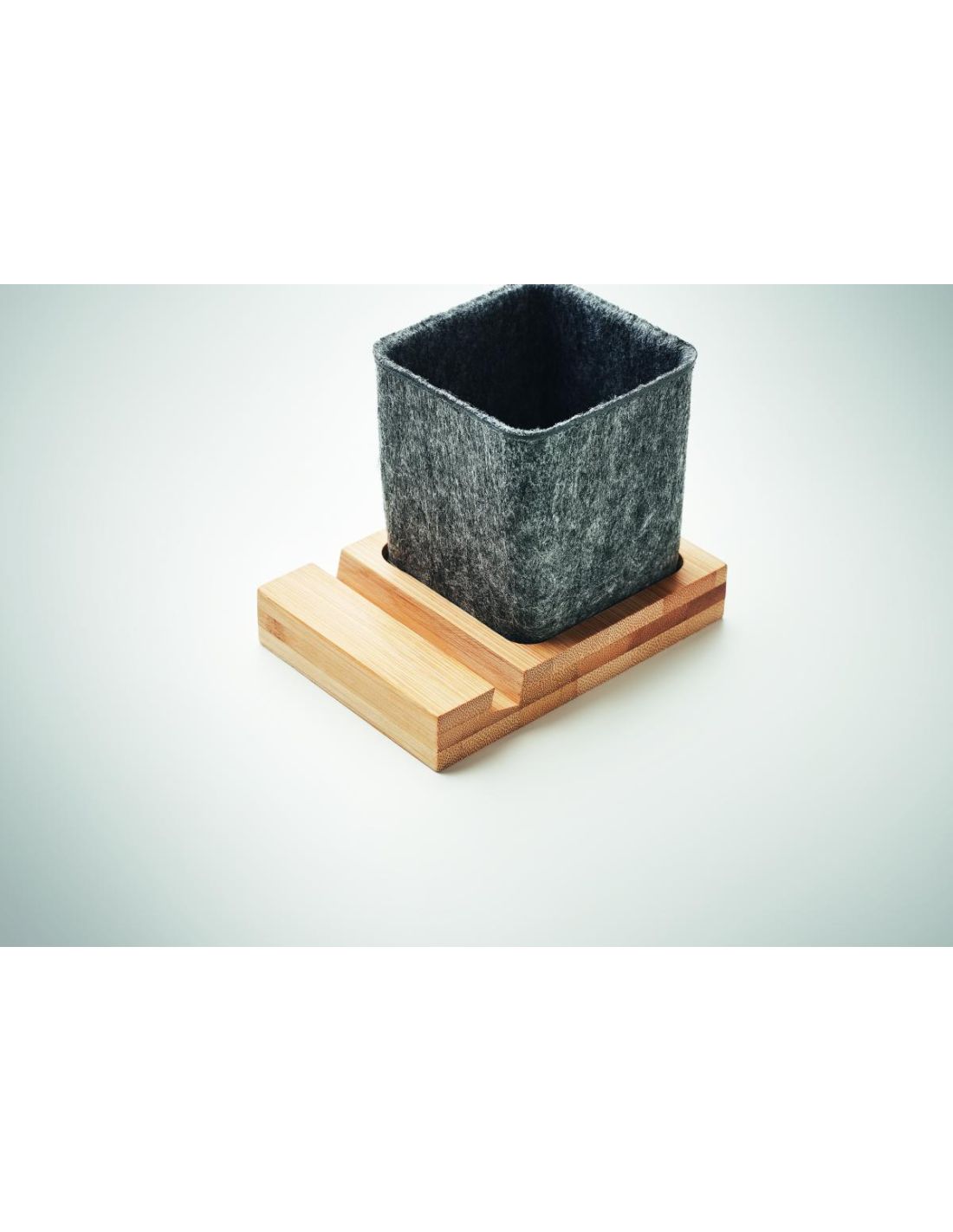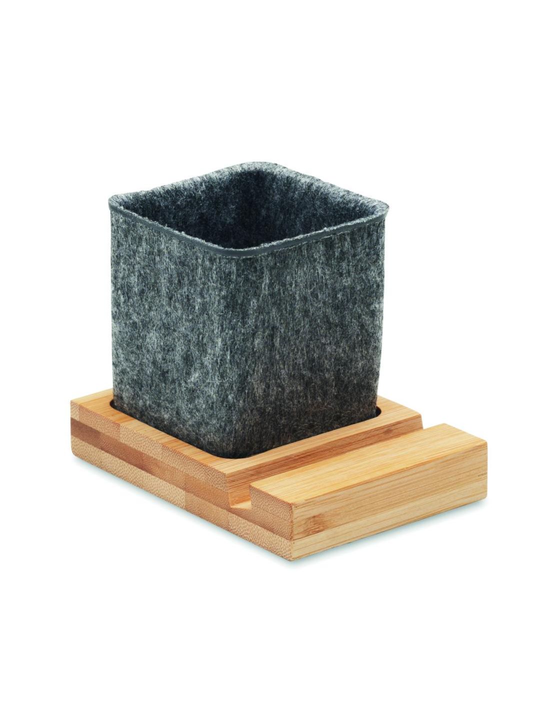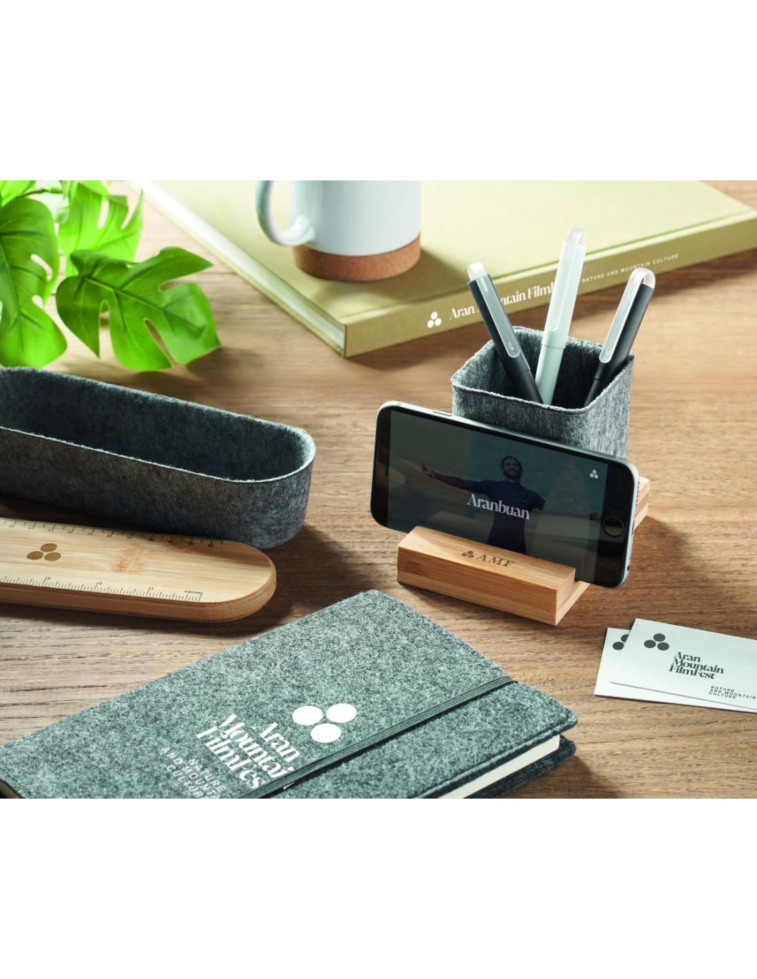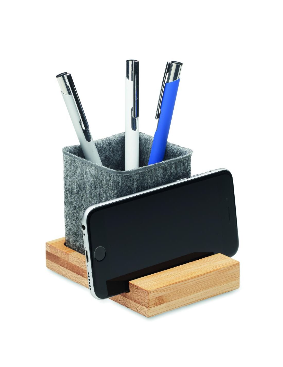 Portabolígrafos de fieltro RPET con base de bambú y soporte para teléfono.