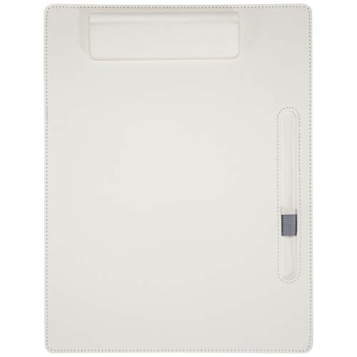 El portapapeles combina un elegante diseño en piel de poliuretano con prácticas funciones tanto para reuniones como para el uso diario. Se adapta a páginas A4 estándar e incluye un clip magnético, bordes cosidos y un soporte para bolígrafos. En su interior se incluyen 26 hojas de papel de 65 g/m², así como un bolígrafo fabricado con un cuerpo superior de plástico reciclado y un cuerpo inferior de aluminio reciclado con certificado RCS. El bolígrafo también está disponible por separado. Tamaño del portapapeles: 25,5 × 33 cm. Color de la tinta del bolígrafo: negro.