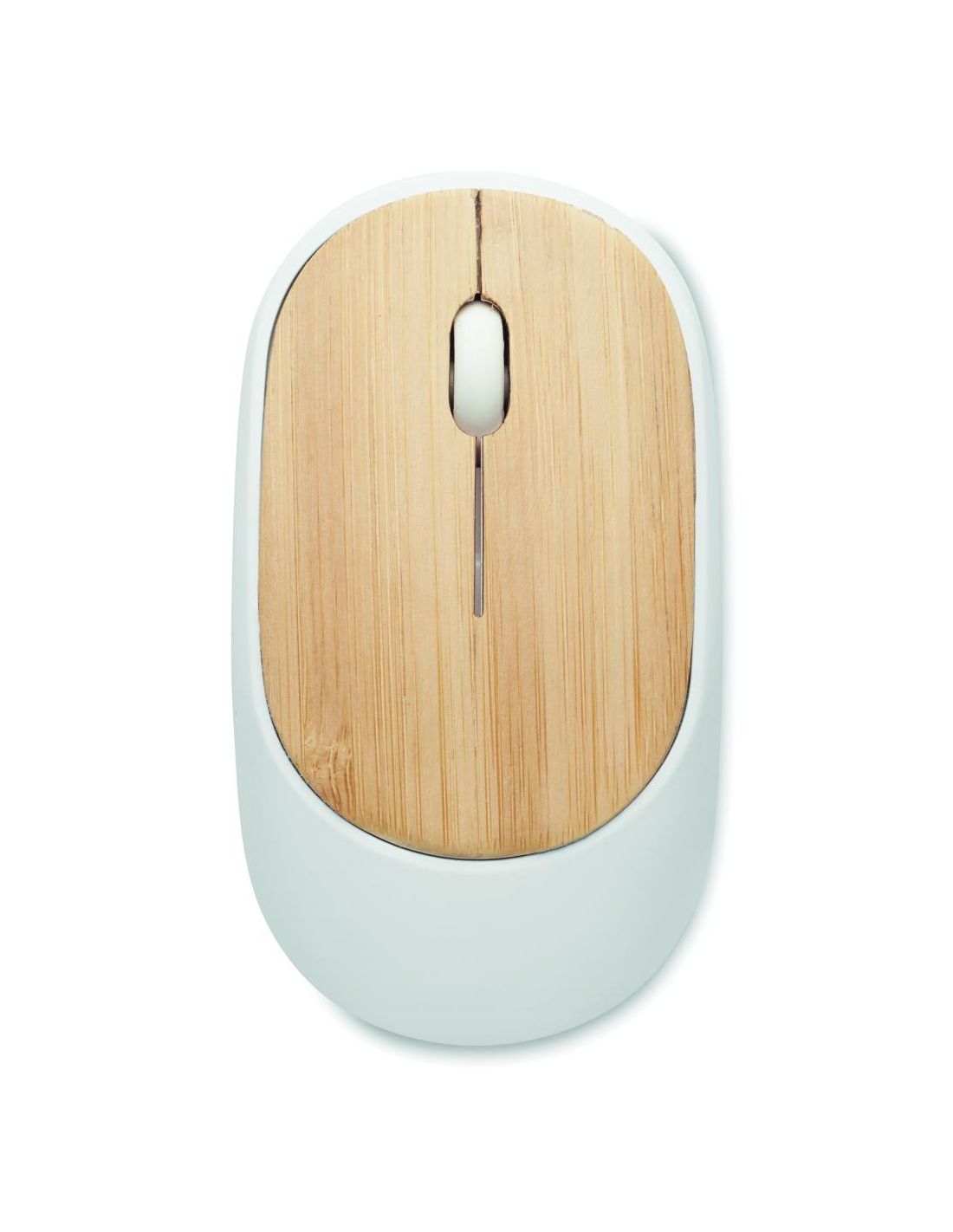 Ratón óptico inalámbrico de ABS reciclado con tapa de bambú. Funciona con 1 pilas AA no incluidas. El bambú es un material natural, el color del articulo puede variar de unas piezas a otras.