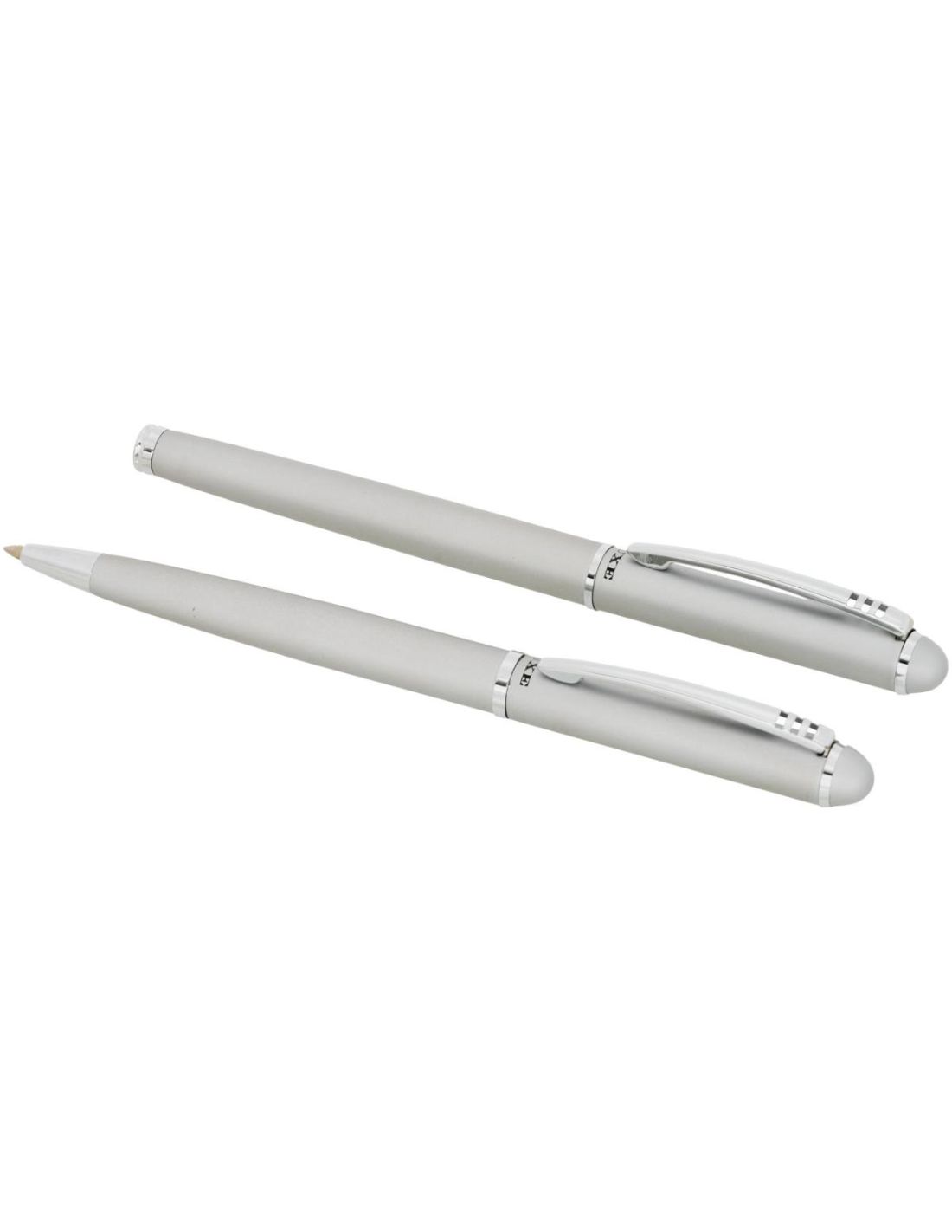 Set exclusivo de bolígrafo con mecanismo de giro y rollerball con capuchón. Disponible en negro brillante, plateado mate y azul mate. Empaquetado en una caja de regalo (17 x 5,5 x 3 cm).