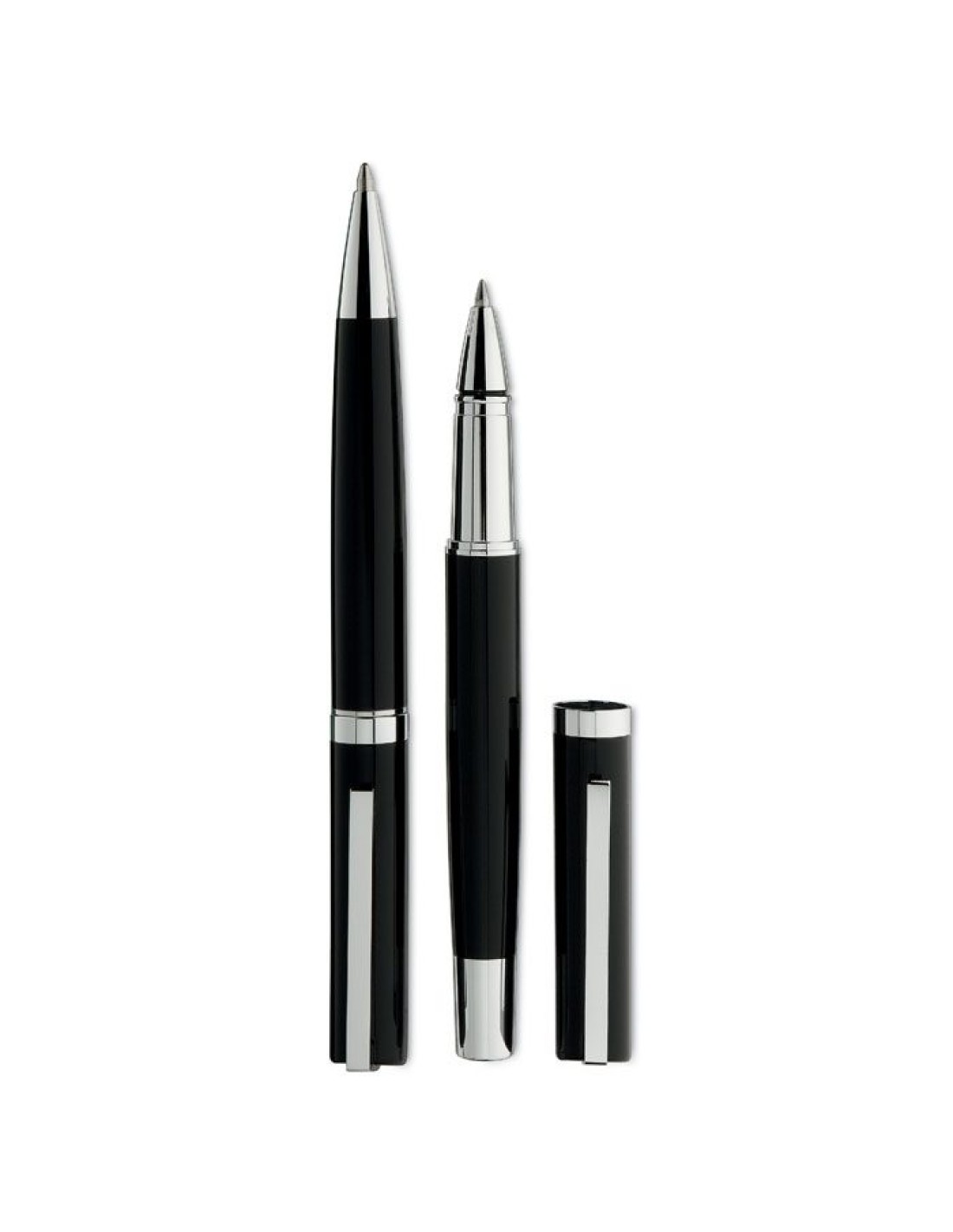 Set de bolígrafo giratorio y roller en caja de regalo. Tinta azul.