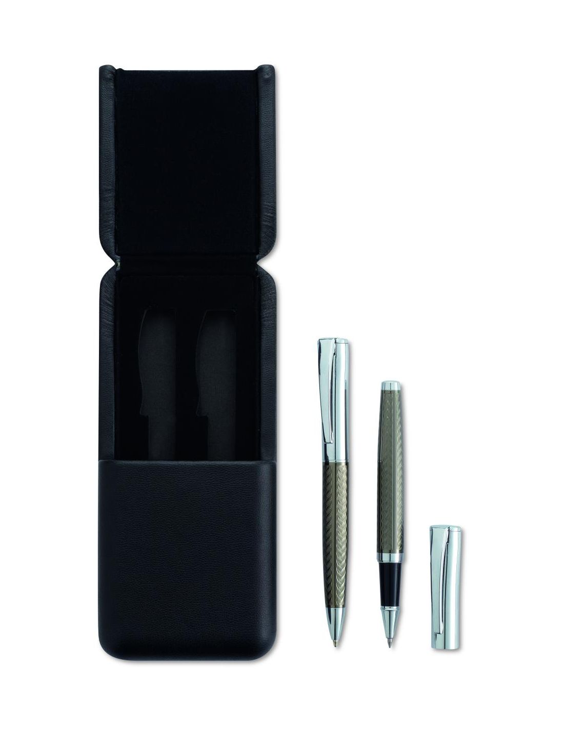 Set de bolígrafo giratorio y roller en caja de regalo. Tinta azul.