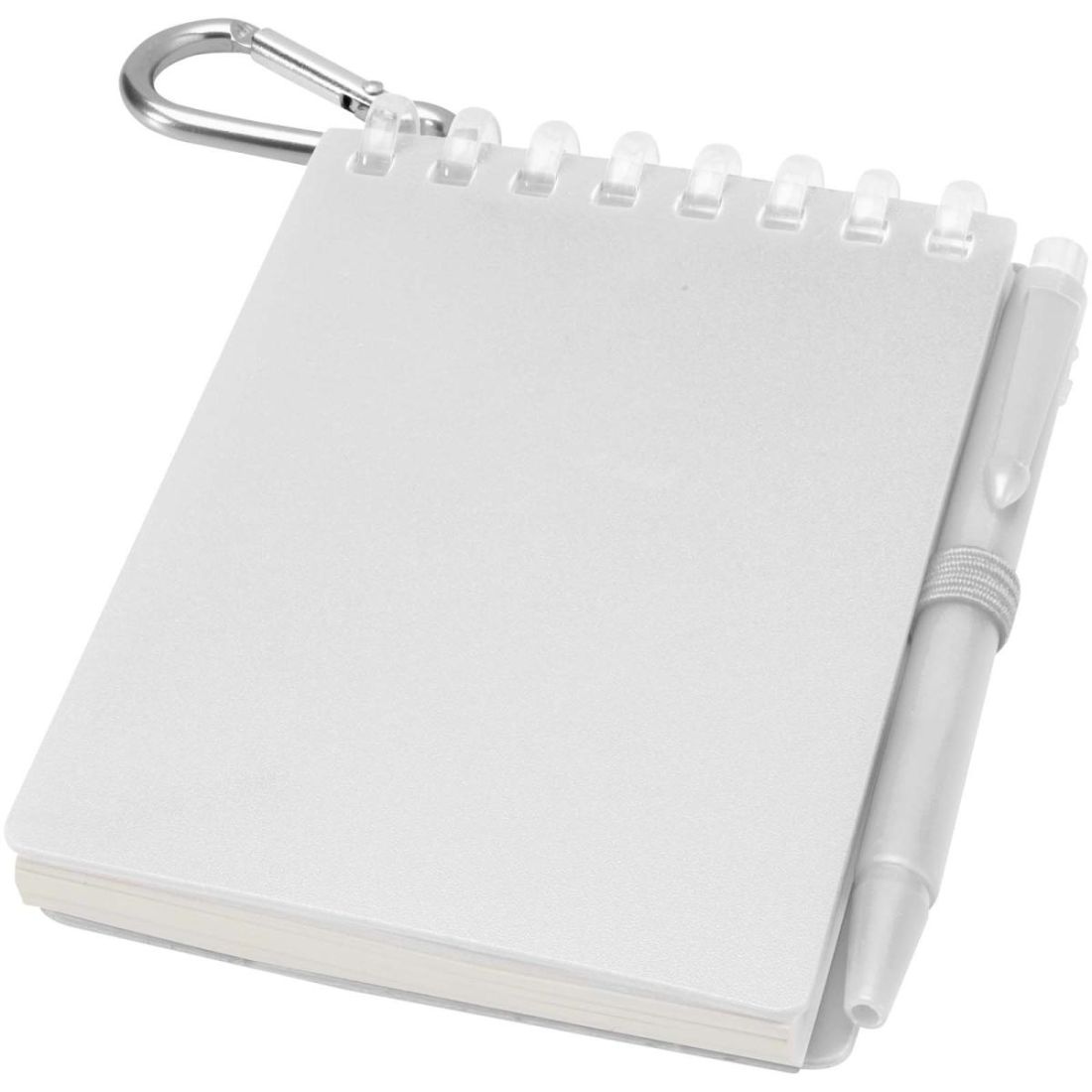 El conjunto de pequeña libreta y bolígrafo es un accesorio compacto y práctico para tomar notas cuando estás fuera. La libreta encuadernada en espiral tiene una suave tapa de plástico reciclado y 70 hojas en blanco de papel de piedra resistente al agua de 120 g/m², lo que la hace ideal para su uso en exteriores. Con esquinas redondeadas y un soporte para bolígrafo integrado, tiene un moderno tamaño reducido sin dejar de ser funcional. El bolígrafo a juego está fabricado en plástico ABS reciclado, escribe con tinta negra y ofrece una longitud de escritura de 250 metros. Una anilla metálica de color a juego permite sujetarlo fácilmente a una mochila, un bolso o un llavero, lo que lo hace perfecto para tomar notas de forma duradera y portátil. Tamaño de la libreta: 11 x 7,5 cm.