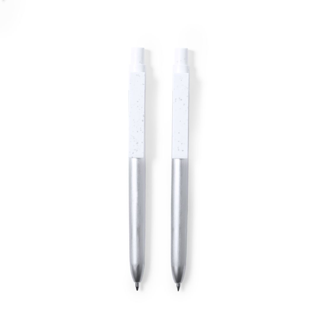 Set eco-friendly de bolígrafo y roller, fabricados en aluminio reciclado y con detalles en ABS reciclado (RABS). Incluye: Bolígrafo en aluminio reciclado de mecanismo pulsador, con cuerpo en color plateado y accesorios en blanco. Con distintivo aluminio reciclado en la parte superior del bolígrafo, cartucho jumbo y tinta azul. Roller en aluminio reciclado de mecanismo pulsador, con cuerpo en color plateado y accesorios en blanco. Con distintivo aluminio reciclado en la parte superior del roller, cartucho jumbo y tinta azul.Set presentado en estuche individual de diseño kraft con funda a juego.El origen del aluminio reciclado se encuentra en la reutilización casi infinita de uno de los materiales con mayor potencial de reciclabilidad sin perder sus propiedades. Esta característica lo convierte en un material eco-friendly de origen reciclado, fácilmente reciclable y de cuyos procesos de tratamiento y desechos para la obtención del material se pueden obtener nuevos recursos reutilizables, consumiendo menos energía en su fabricación, entre otros factores de sostenibilidad.Certificación GRS (Global Recycled Standard / Estándar de Reciclaje Global), que garantiza el origen reciclado del material usado para fabricar el producto.