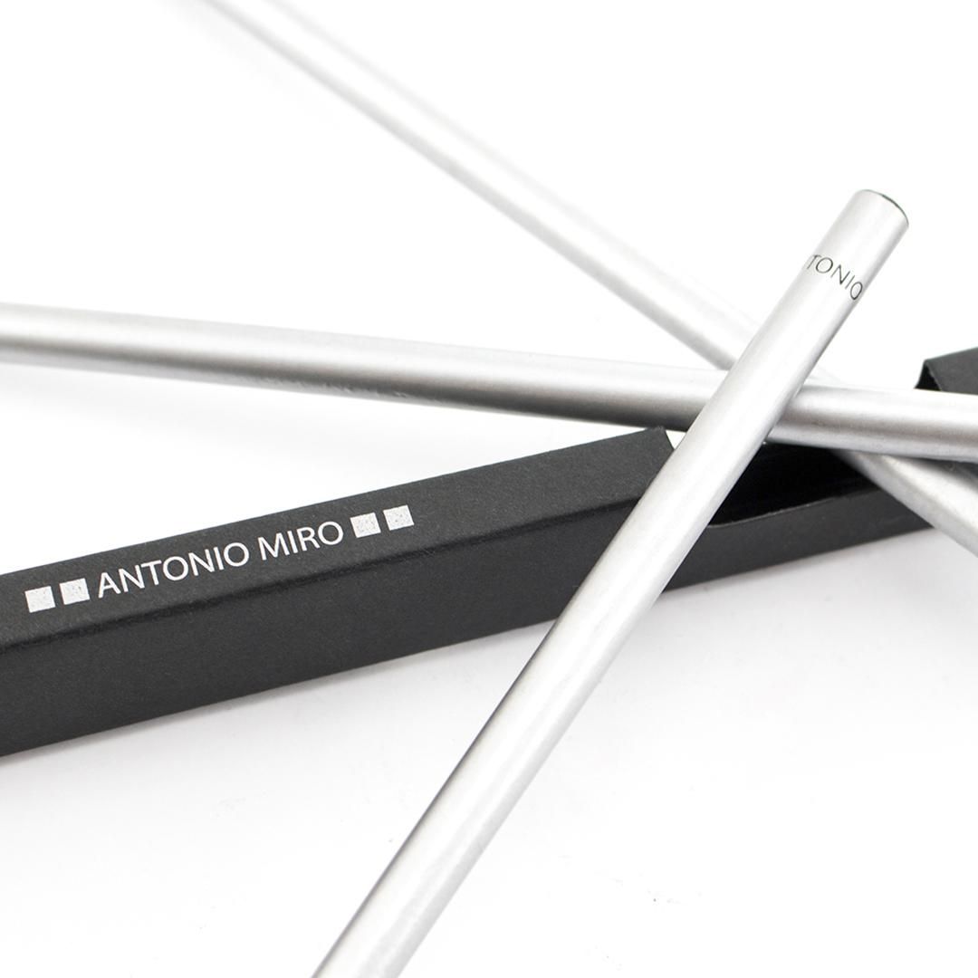 Set de 3 lápices de madera de Antonio Miró en elegante acabado plateado, con logotipo de la marca en parte superior. Presentados en elegante estuche...