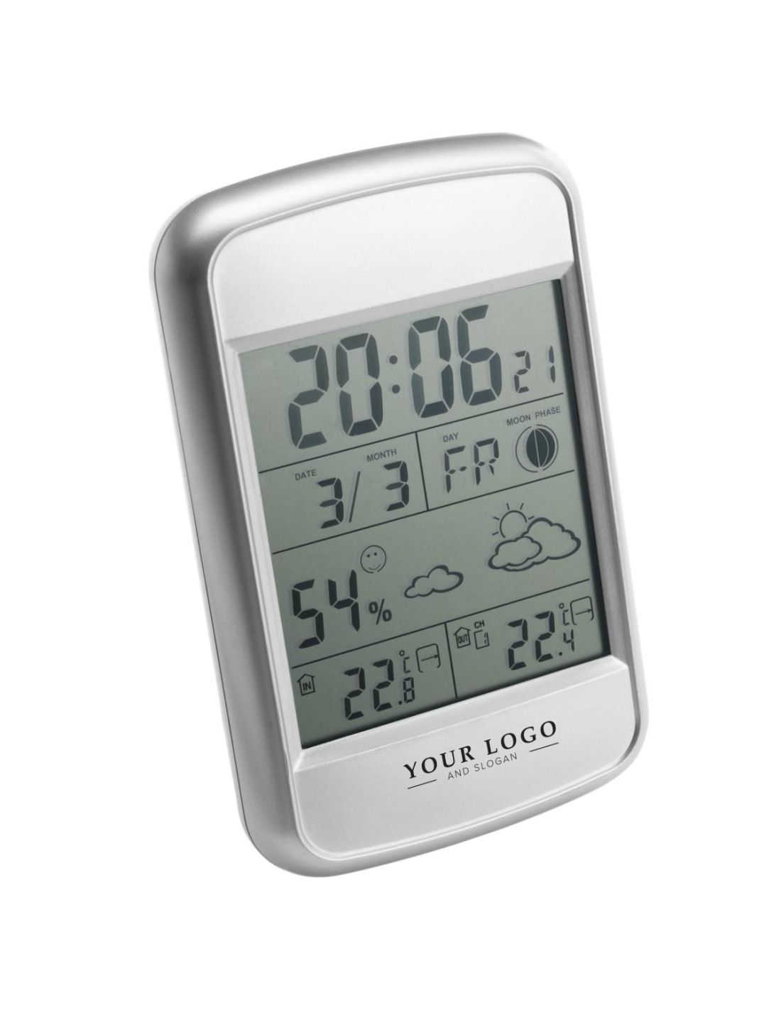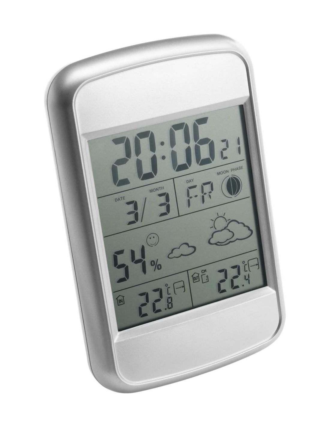 Estación meteorológica digital de HIPS. Con reloj, calendario, higrómetro, termómetro, previsión del tiempo, fase lunar y sensor exterior. Pila incluida.