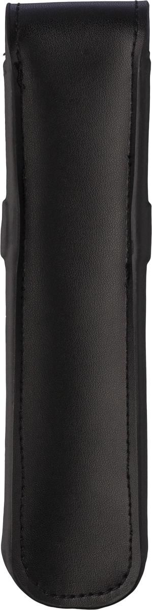 Estuche con doble capa de cuero (piel de vacuno) para bolígrafos, con solapa y cierre tipo cinturón. Interior de terciopelo suave. Presentado en una funda de cartón negra.