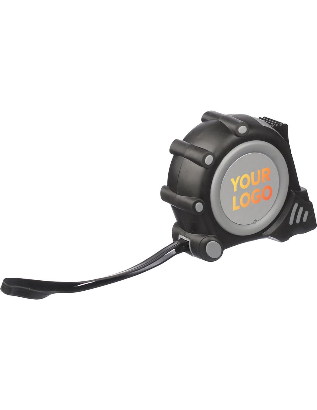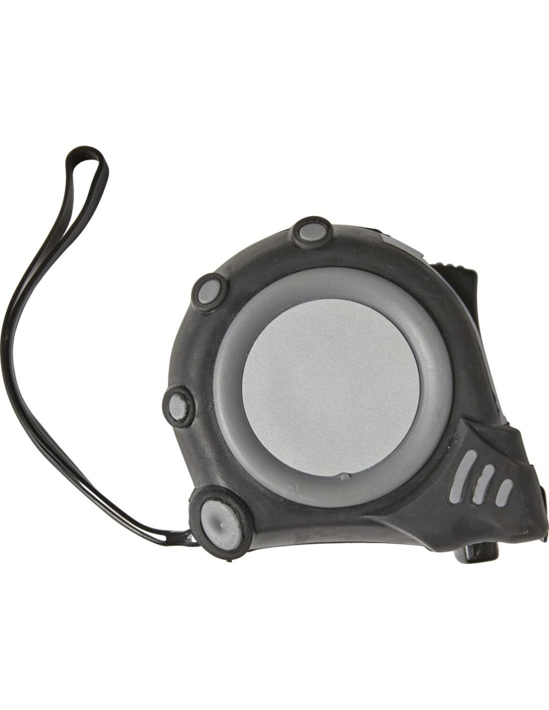 Flexómetro calibrado de 5 metros, de plástico, con clip para el cinturón y cuerda. Sistema métrico en centímetros y pulgadas.