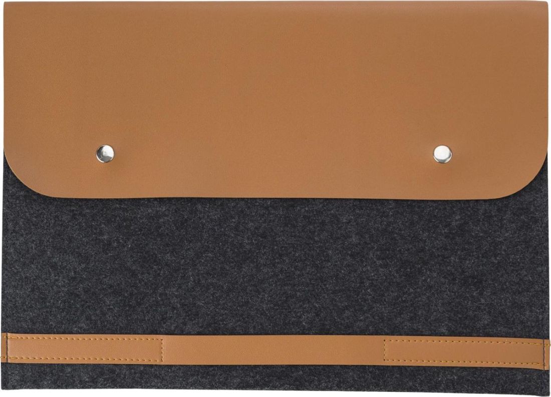 Funda para portátil (14 '') de fieltro rPET con detalles de PU. Cierre con dos botones.