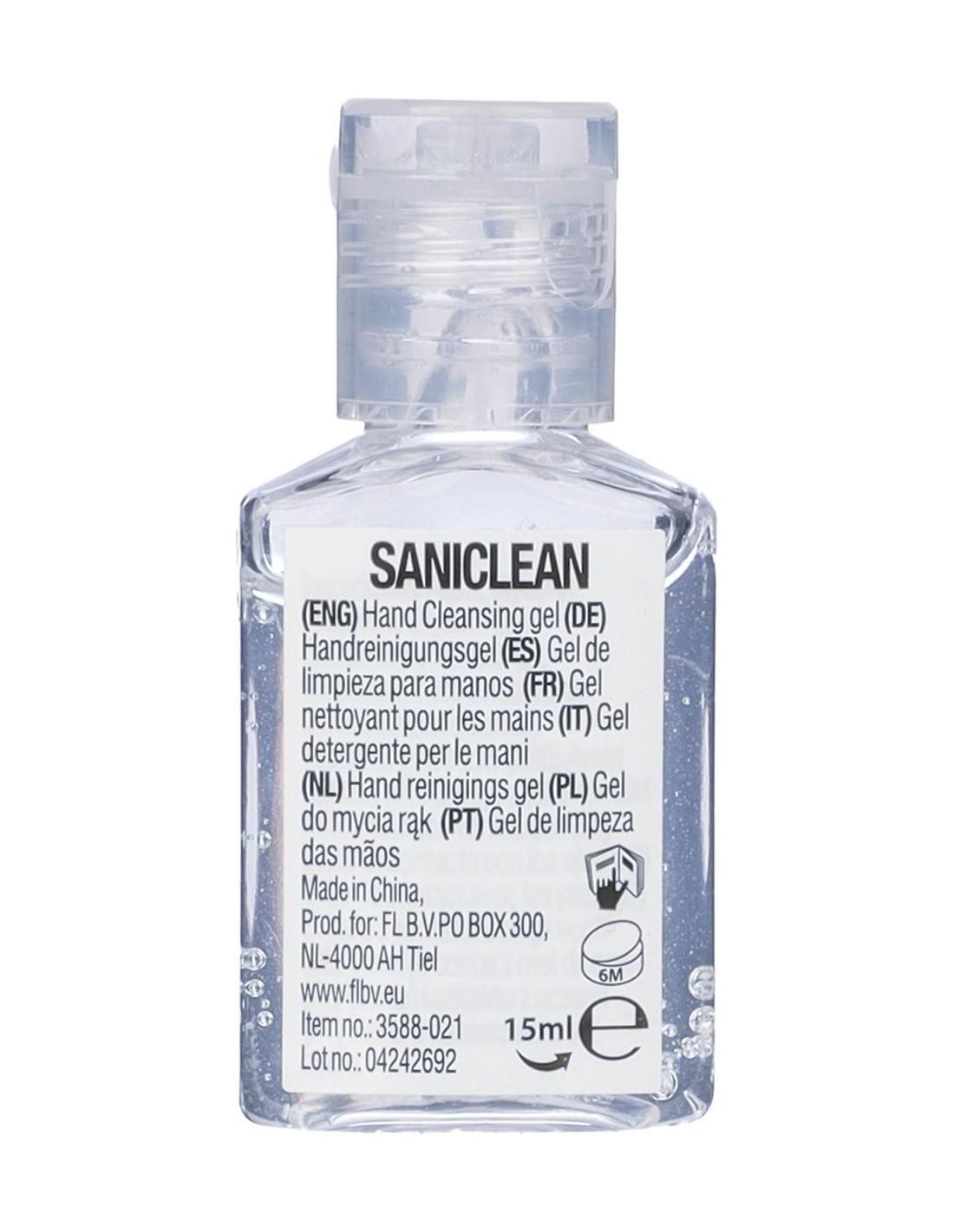 Botella de PET (15 ml.) con gel para las manos enriquecido con crema hidratante y vitamina E y un 62% de alcohol.
