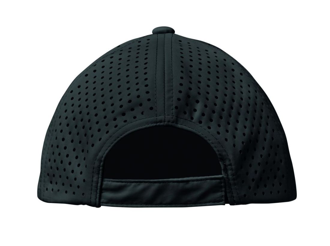 Gorra de poliéster 5 paneles con cierre de velcro ajustable y agujeros de ventilación. Con 2 ojales cosidos a juego. El artículo es de secado rápid…