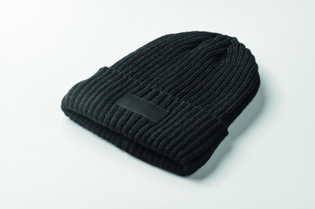 Gorro de punto unisex de exterior acrílico e interior de poliéster con aislamiento 3M y con dobladillo. Diseño de talla única.