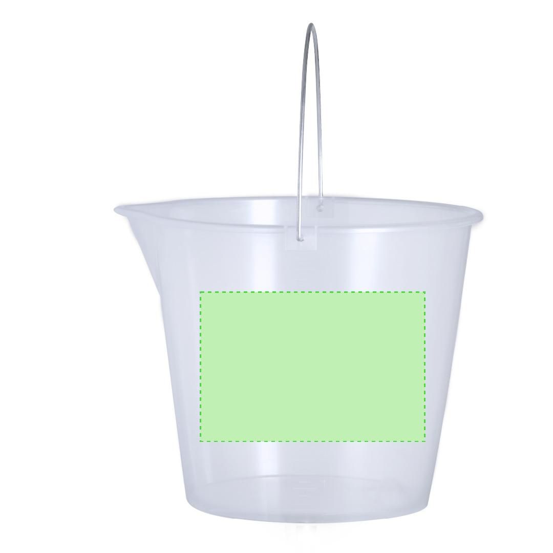 Cubo de 11L fabricado en resistente PP transparente. Con asa metálica y medidor lateral en ml para una rápida y fácil visualización. De perfil redondeado y con vertedor para evitar derrames, además de una amplia zona de marcaje.