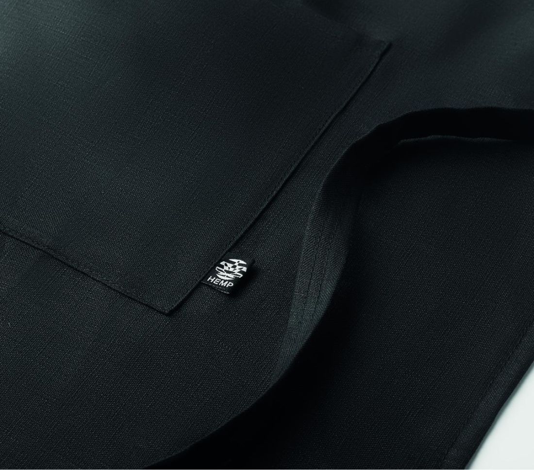 Delantal de cocina ajustable con dos bolsillos de cáñamo 100%. 200 gr/m².