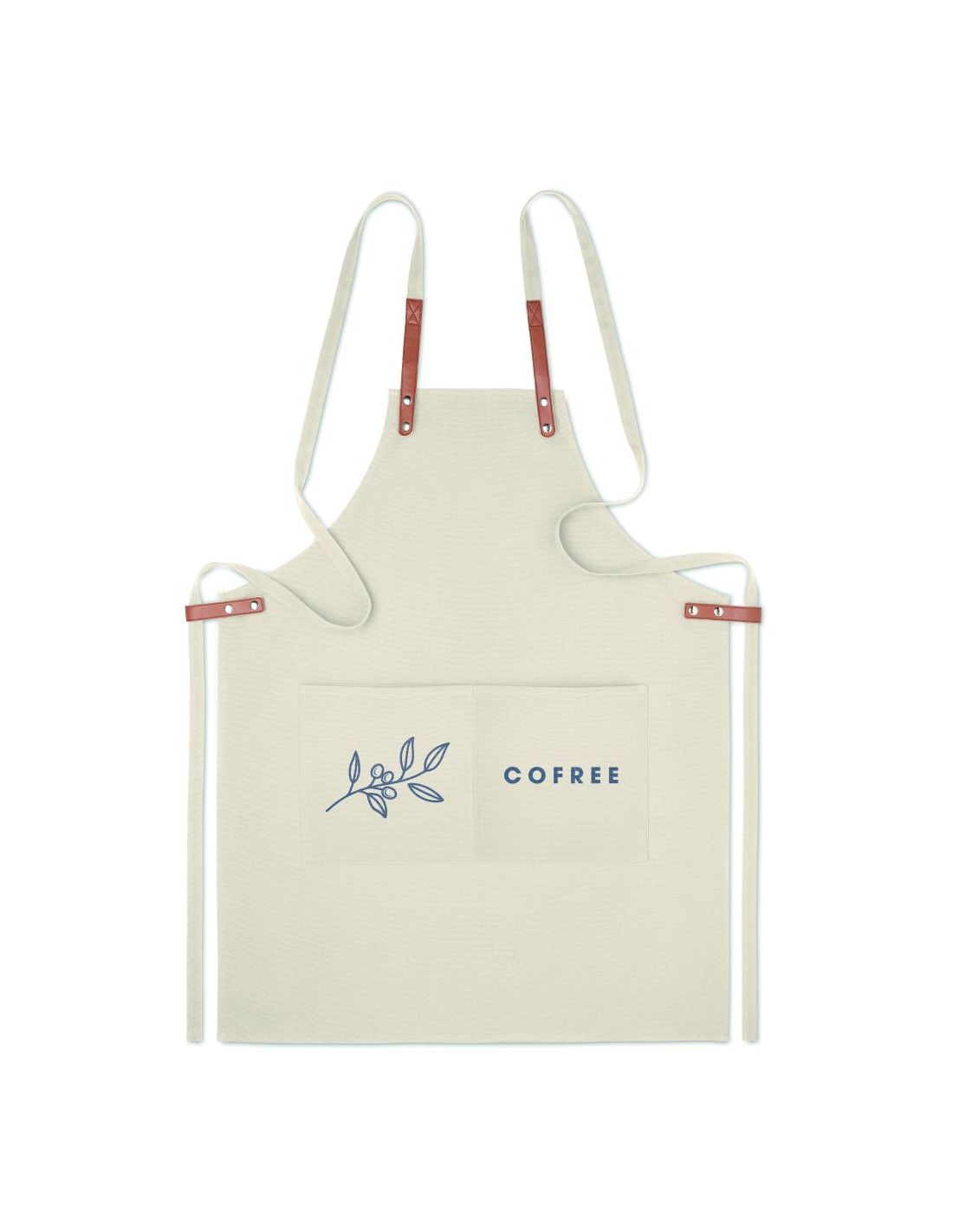 Delantal de cocina ajustable con 2 bolsillos delanteros en algodón/canvas orgánico de 340 gr/m². Presentado en caja individual.