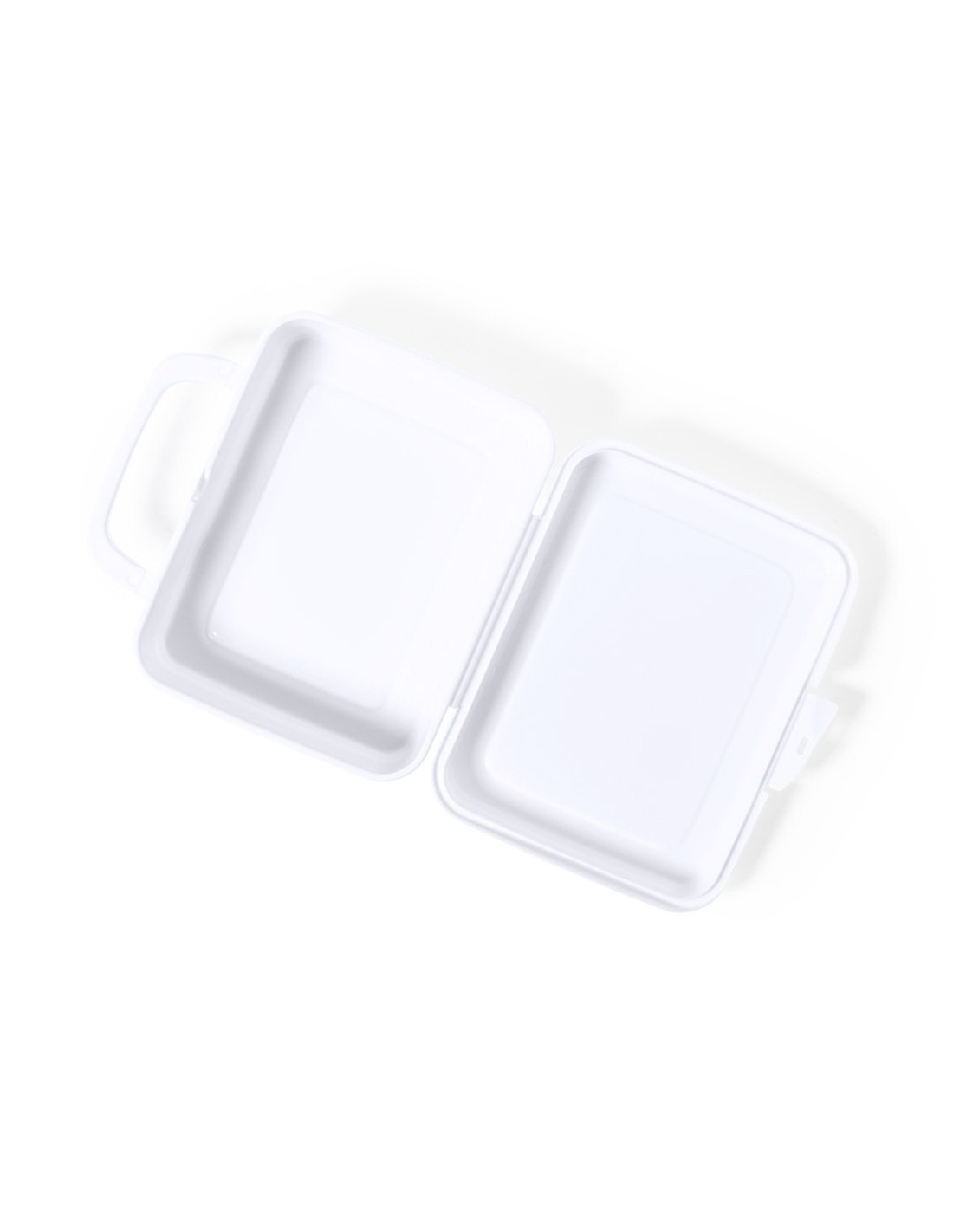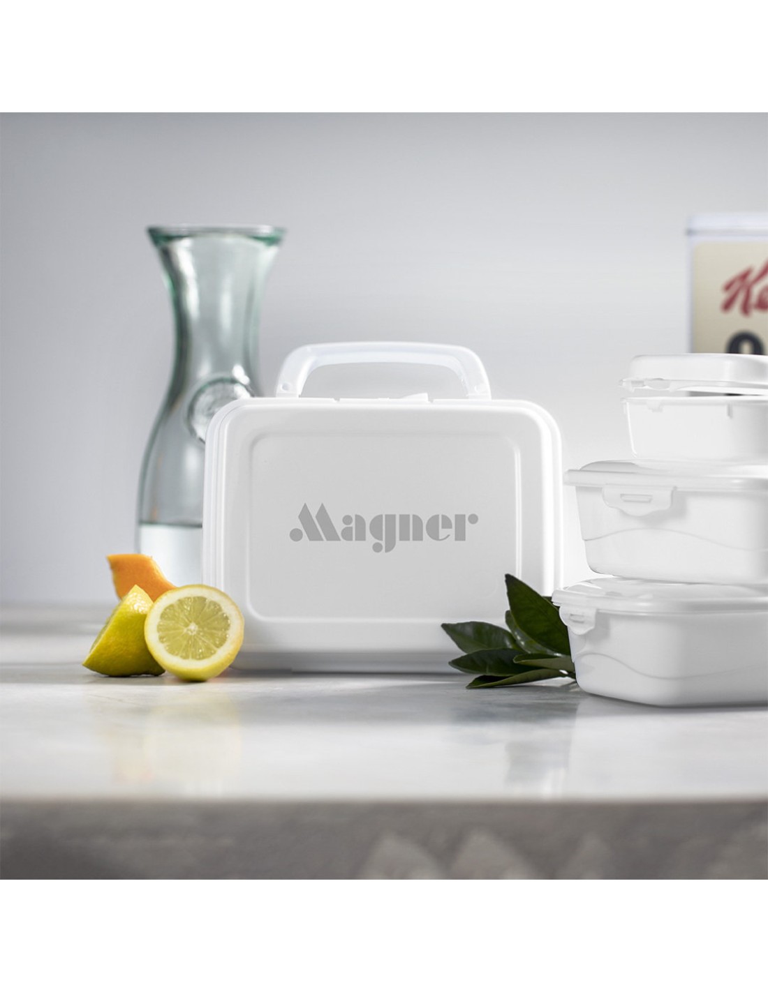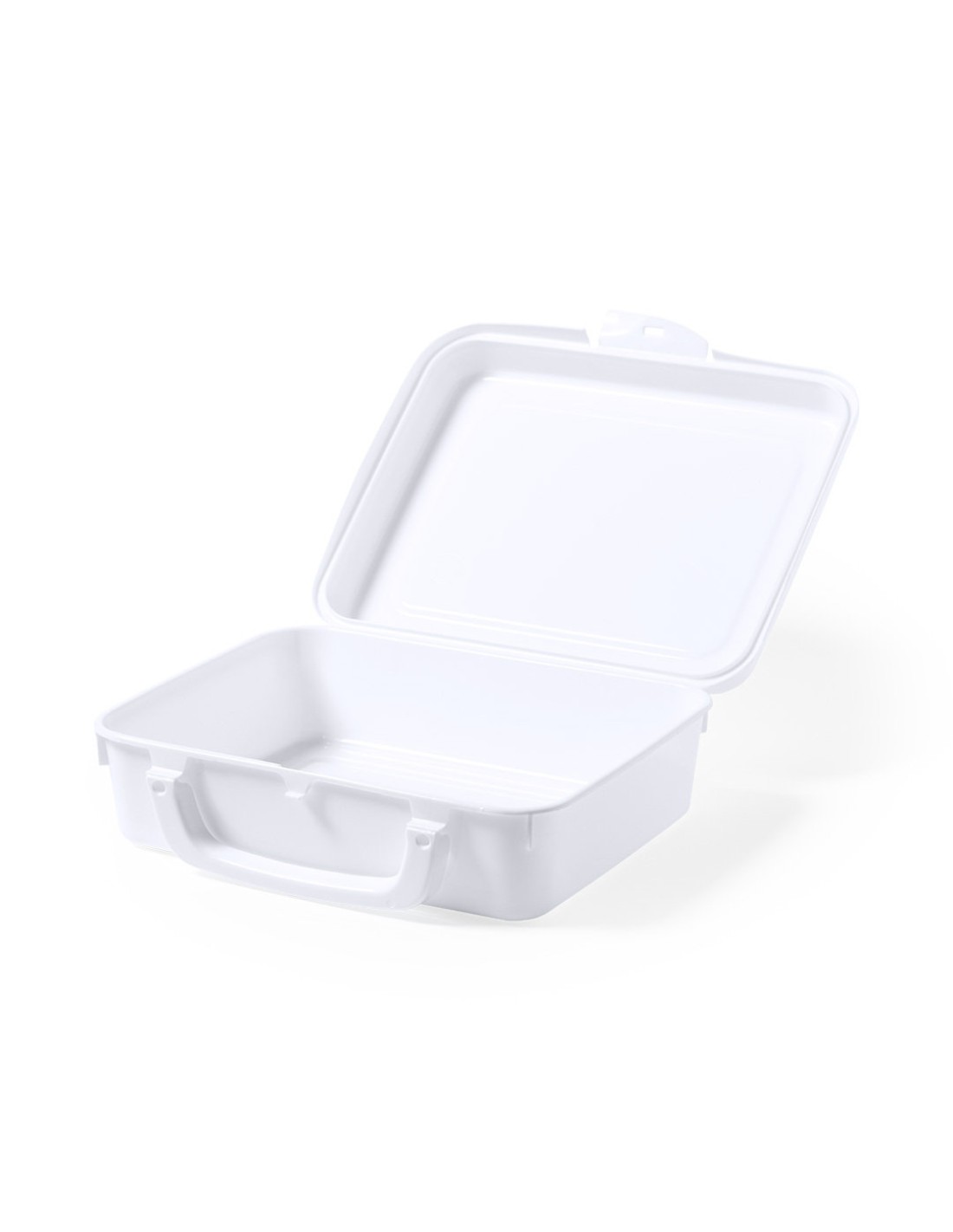 Fiambrera de 1L de capacidad, hecha en PP de color blanco. De fabricación europea y con certificación Food Grade, garantizando la seguridad cuando los alimentos entran en contacto con el material usado para fabricar el producto. Formato cuadrado, con práctica asa de transporte y cierre de seguridad.