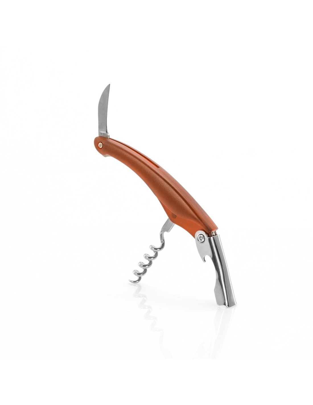 Clásico sacacorchos con accesorios de acero inox. Incluye cortacápsulas y abridor. Presentado en caja individual.
