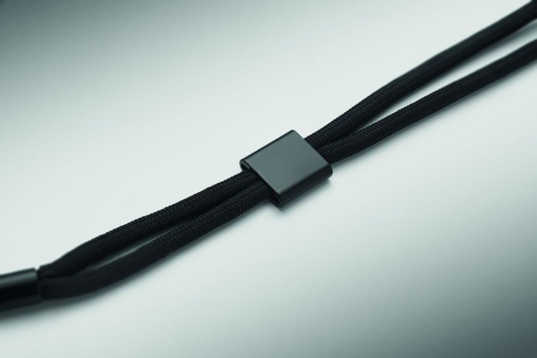 Lanyard de mano con soporte para cable de teléfono ajustable de poliéster RPET. Longitud 25 cm.