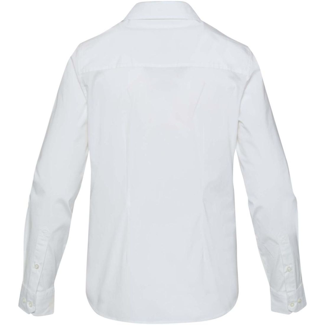 La camisa de popelina de manga larga para mujer ofrece un estilo refinado con un ajuste elástico y femenino. Confeccionada con algodón de primera calidad con certificado BCI y mayor elasticidad, la estructura de hilos retorcidos de dos cabos y 30 deniers proporciona un acabado suave y de alta calidad y no se deforma. Diseñada con un corte recto y pinzas en la parte delantera y trasera, ofrece una silueta favorecedora y comodidad durante todo el día. Acabada con un cuello recto atemporal, la camisa combina elegancia y rendimiento, lo que la hace un básico refinado para el día a día.