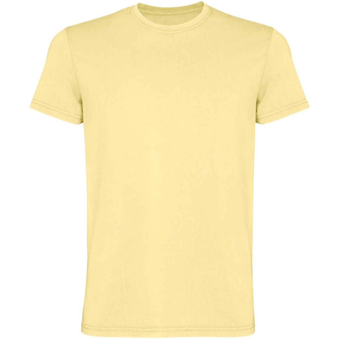 Camiseta de manga corta para hombre. Acabado con lavado ácido. Diseño con cuello redondo y canalé 1x1. Punto de cubierta tono sobre tono con acabado pulido.