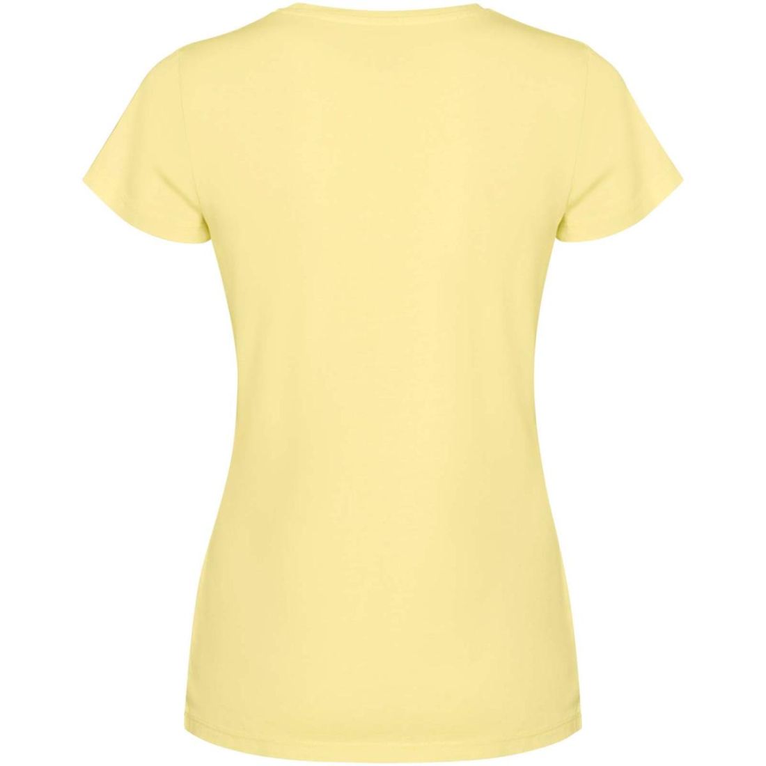Camiseta de manga corta para mujer. Acabado con lavado ácido, cuello redondo de canalé 1x1 y costuras laterales. Punto de cubierta tono sobre tono en el cuello.