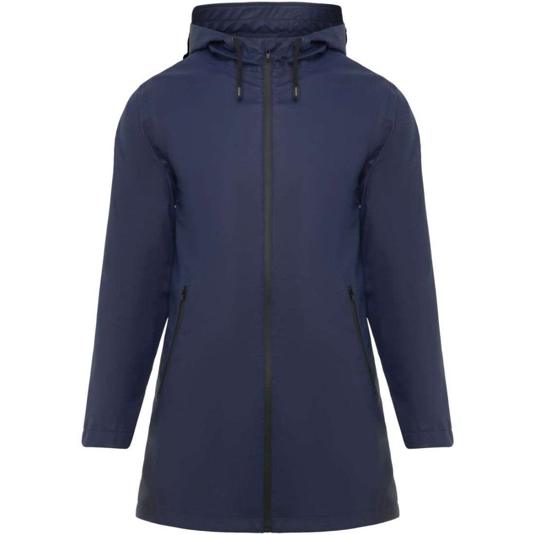 Chubasquero impermeable entallado para mujer. Capucha con visera. Cremalleras y costuras termoselladas. Detalles a contraste en color negro. Dos bolsillos laterales con cremallera. Bajo posterior...