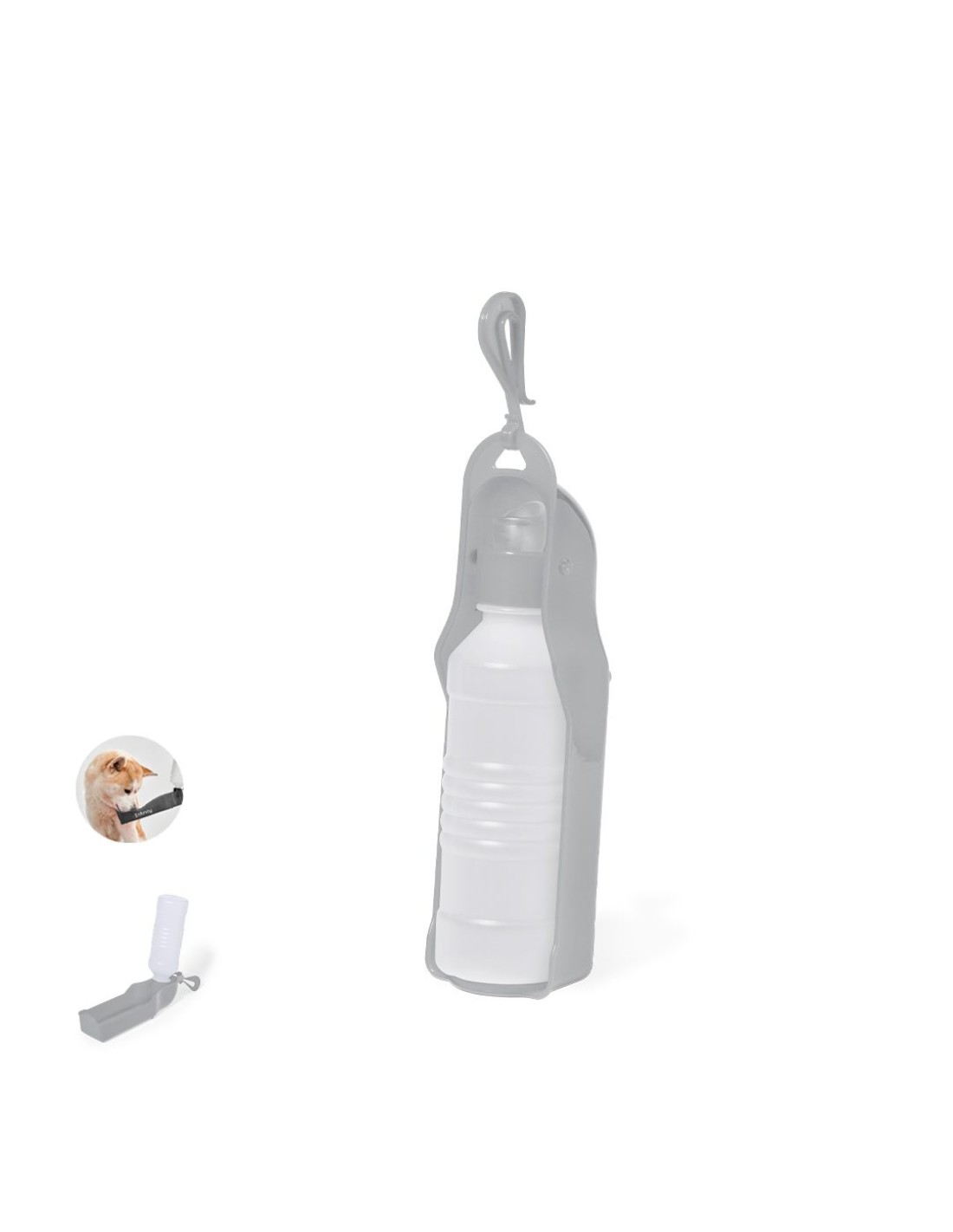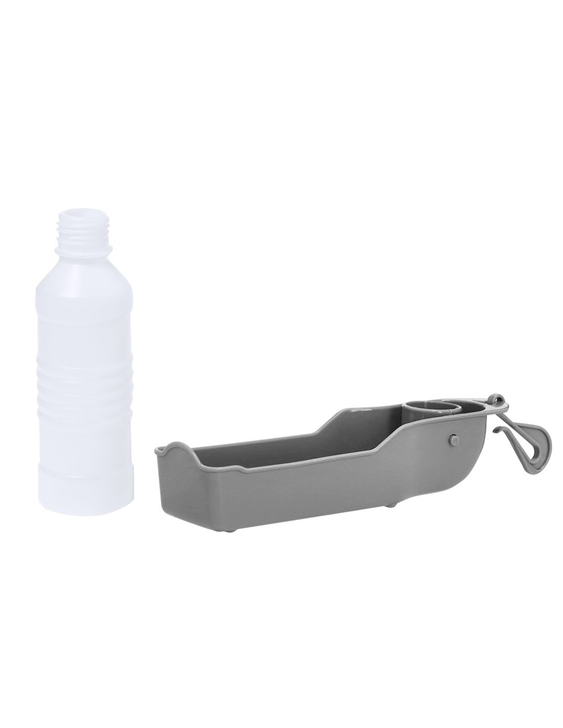 Práctico bidón y bebedero para mascotas de 250 ml de capacidad, fabricado en resistente PP. Fácil de usar, solamente hay que poner el bidón en posición vertical y presionarlo hasta que el bebedero se llene con la cantidad de líquido deseada. Con gancho de ajuste y presentado individualmente en caja de diseño kraft.