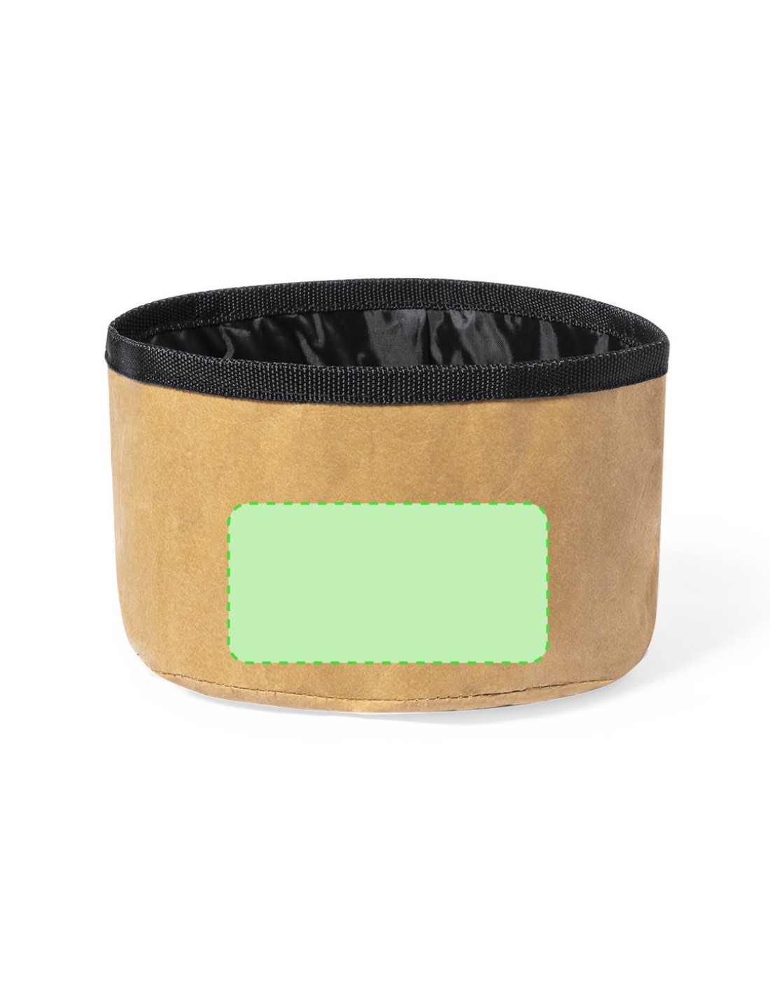 Bowl plegable para mascotas de 1,3l de capacidad, con exterior en resistente papel reciclado laminado de 270g/m2. Interior en poliéster RPET, elaborado a partir de plástico reciclado, para así fomentar la reutilización de residuos plásticos y ayudar a la sostenibilidad del planeta. Apto para sólidos y líquidos.