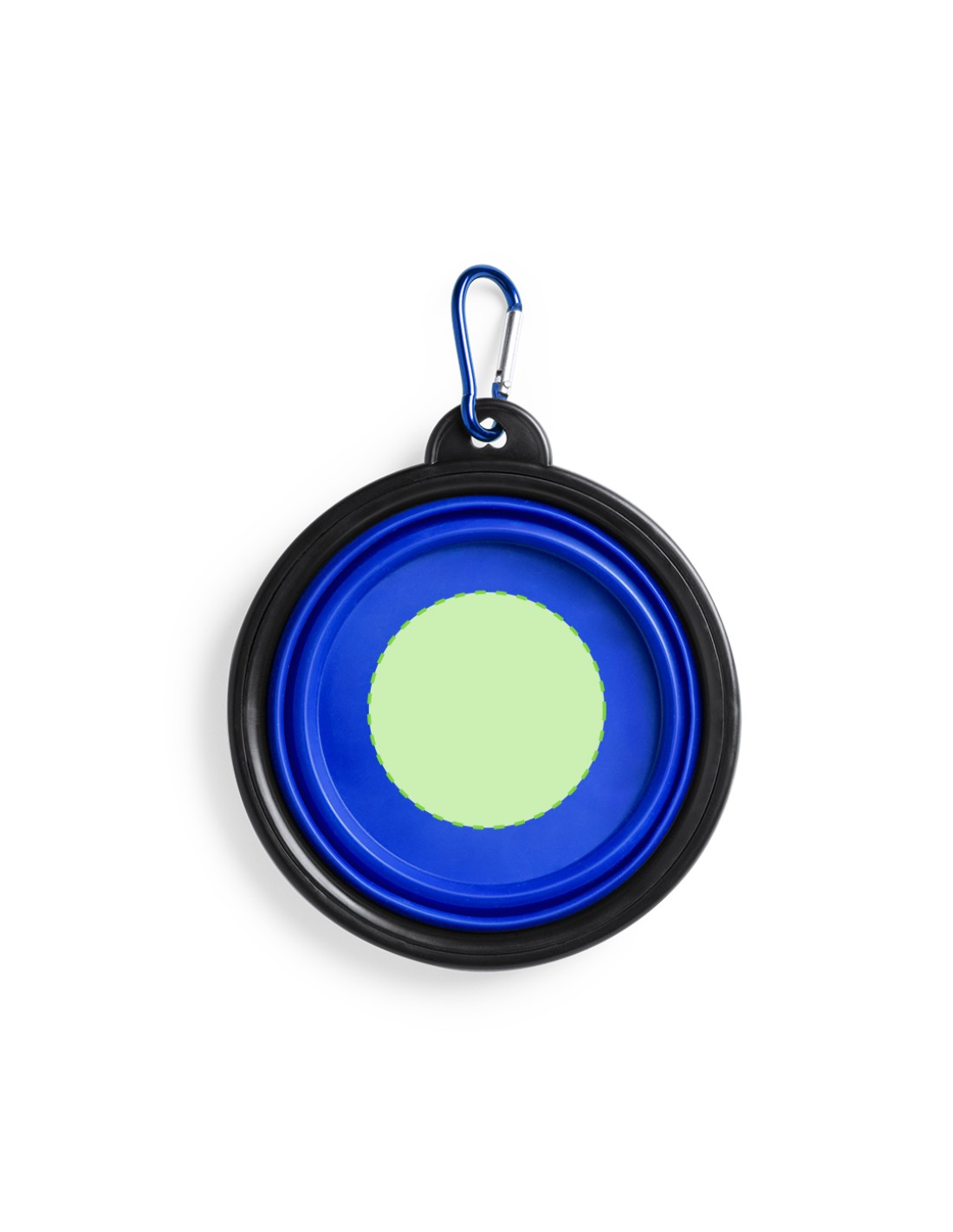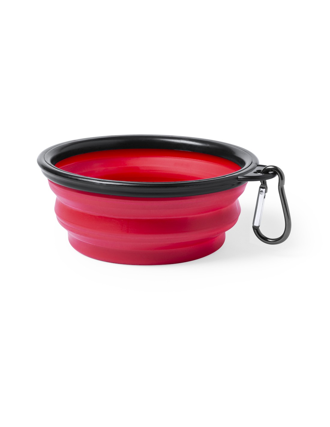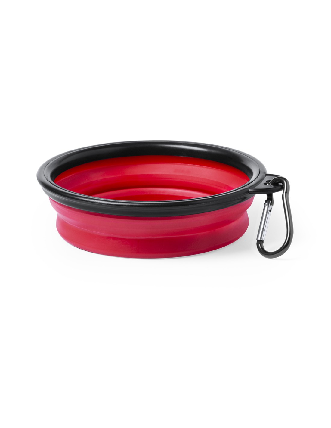 Set para mascotas. Incluye práctico bidón de 900ml con 2 compartimentos -sólidos y líquidos- y cierre de seguridad. Bowl plegable a juego, con mosquetón metálico de fijación.
