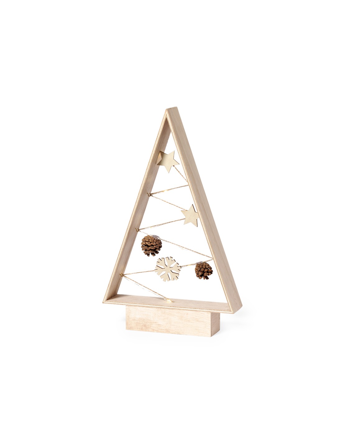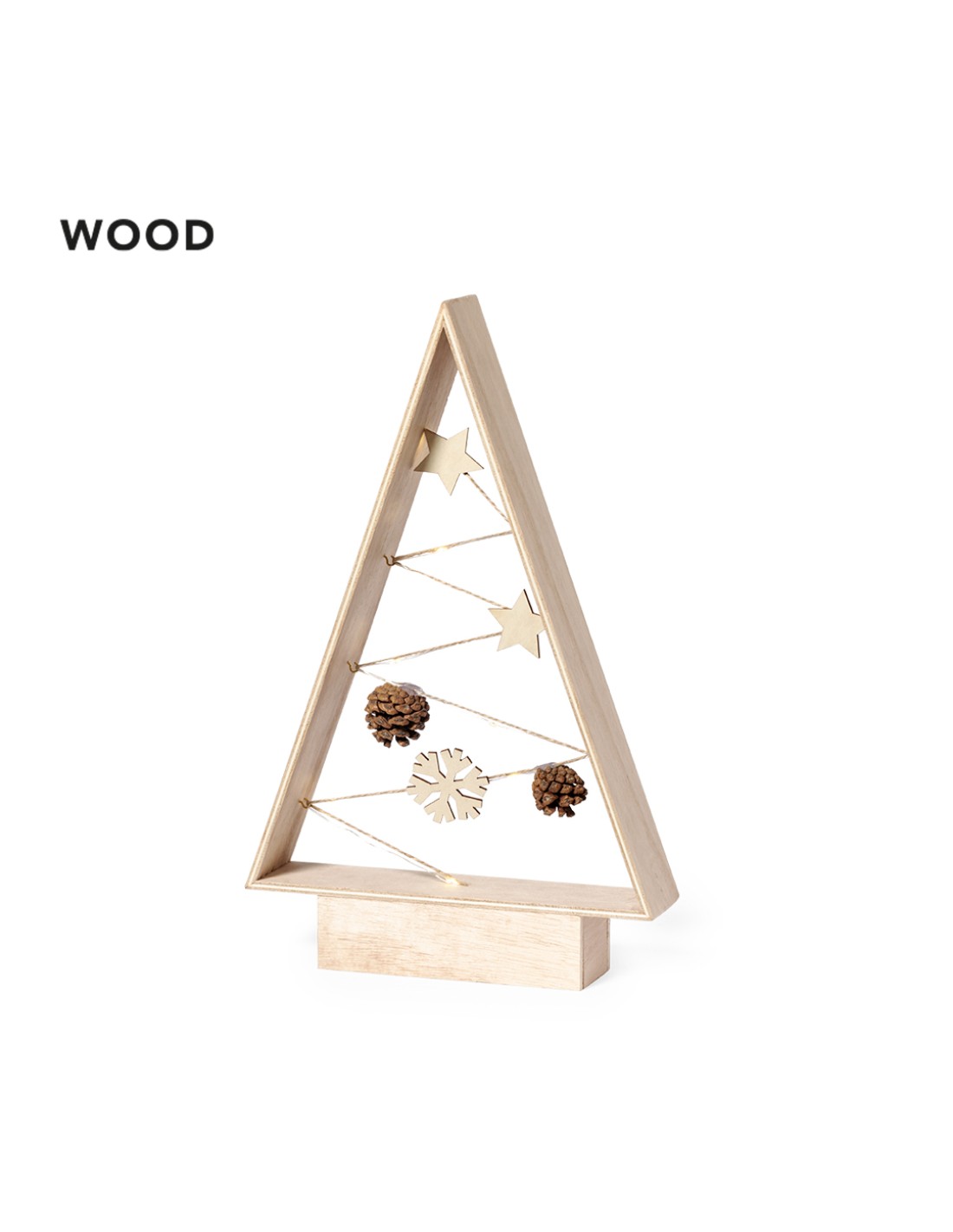 Moderno y elegante árbol de navidad fabricado en madera natural. Un original complemento decorativo que incluye adornos en materiales naturales, todos ellos iluminados por un trenzado de leds, ideal para crear un ámbiente acogedor. Con sencillo manual en Español e Ingles.Elaborado con elementos vegetales para así fomentar la utilización de materias primas naturales y reducir las emisiones contaminantes.8 LEDs. Alimentación a pilas (2xAAA no incluidas).