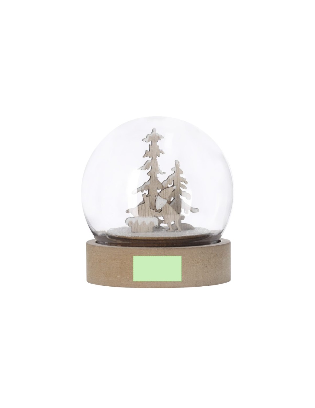Bola iluminada con original diseño navideño. Elaborada en resistente material acrílico, con base de madera lisa para impresión. Dispone de iluminación interior con 1 LED en tono blanco. Alimentación por 3 pilas de botón, incluidas, con botón ON/OFF en la base. Elaborado con elementos vegetales para así fomentar la utilización de materias primas naturales y reducir las emisiones contaminantes.