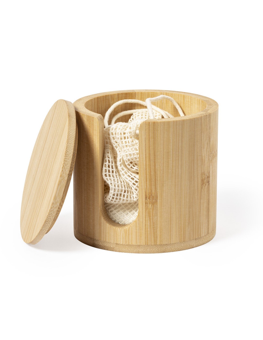 Dispensador de discos desmaquíllantes de línea nature, fabricado en bambú para así fomentar el uso de materias primas naturales. Incluye 10 discos de algodón reutilizables y bolsa de lavado. Presentado en caja individual de diseño eco.
