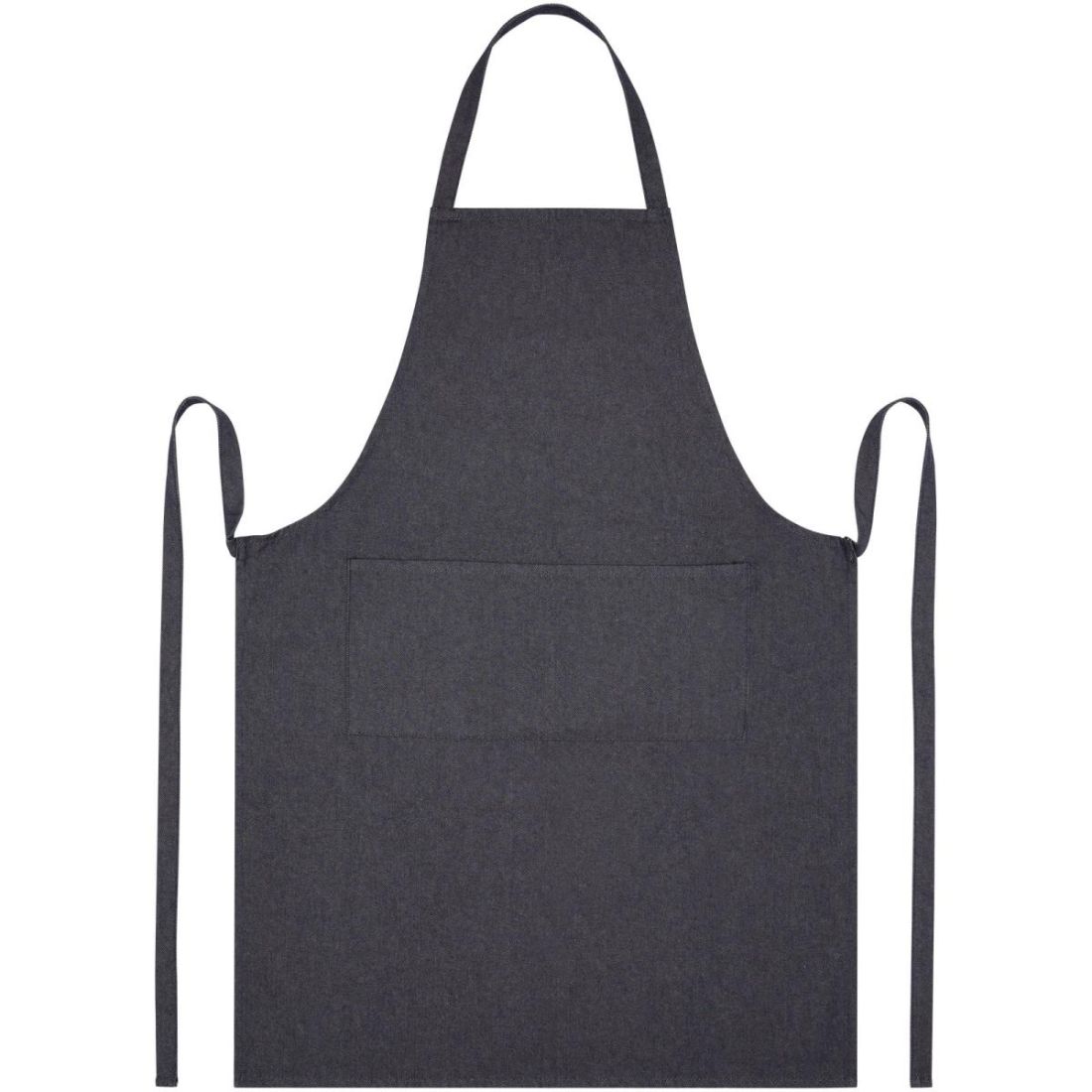 El delantal está fabricado con un 70 % de algodón reciclado (320 g/m²) y un 30 % de poliéster reciclado, por lo que resulta grueso, resistente y cómodo. Dispone de 2 bolsillos adyacentes (22 × 20 cm cada uno) y una cinta de 1 metro para atarlo en la espalda. El delantal también incluye un rastreador Aware™. Esta innovadora función permite a los usuarios rastrear el origen y el recorrido de su artículo a través de un código QR, lo que aumenta la transparencia de la cadena de suministro y fomenta una mayor conexión entre el producto y su proceso de producción.