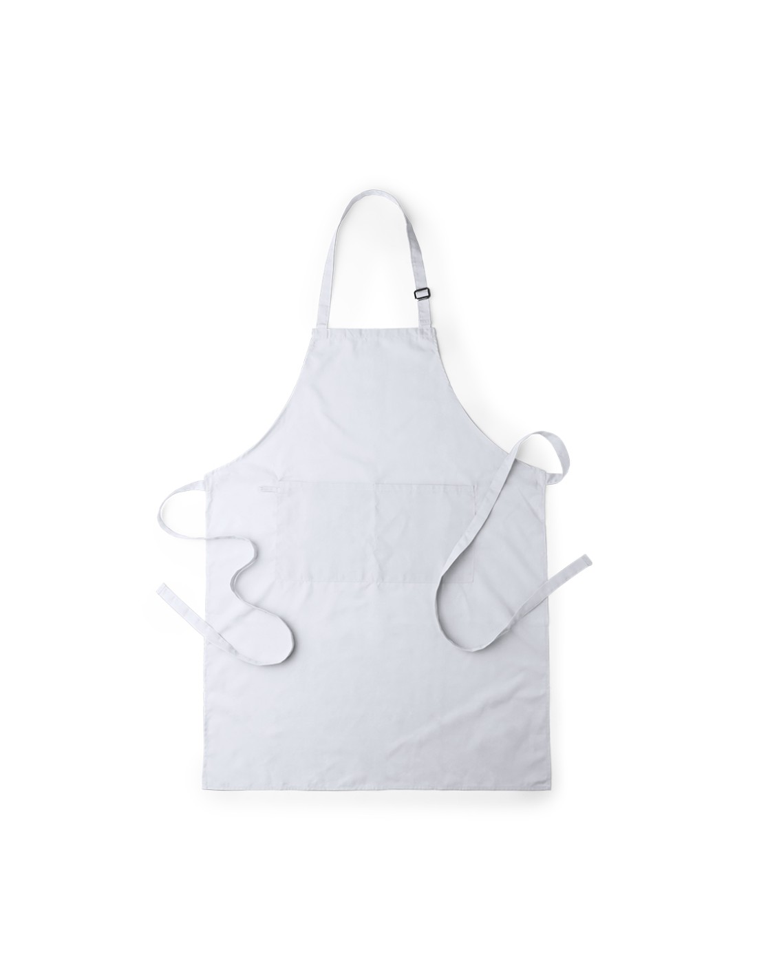 Delantal de alta calidad en material TC -combinado de algodón y poliéster-. En variada gama de vivos colores, con bolsillo doble frontal y cintas de cuello con ajustador. De corte por debajo de la rodilla.
