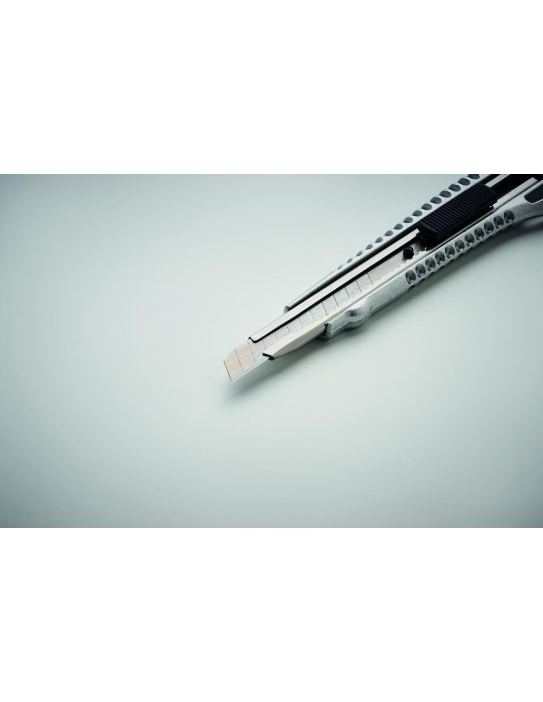 Cutér retráctil de aluminio con 13 hojas de acero al carbono.