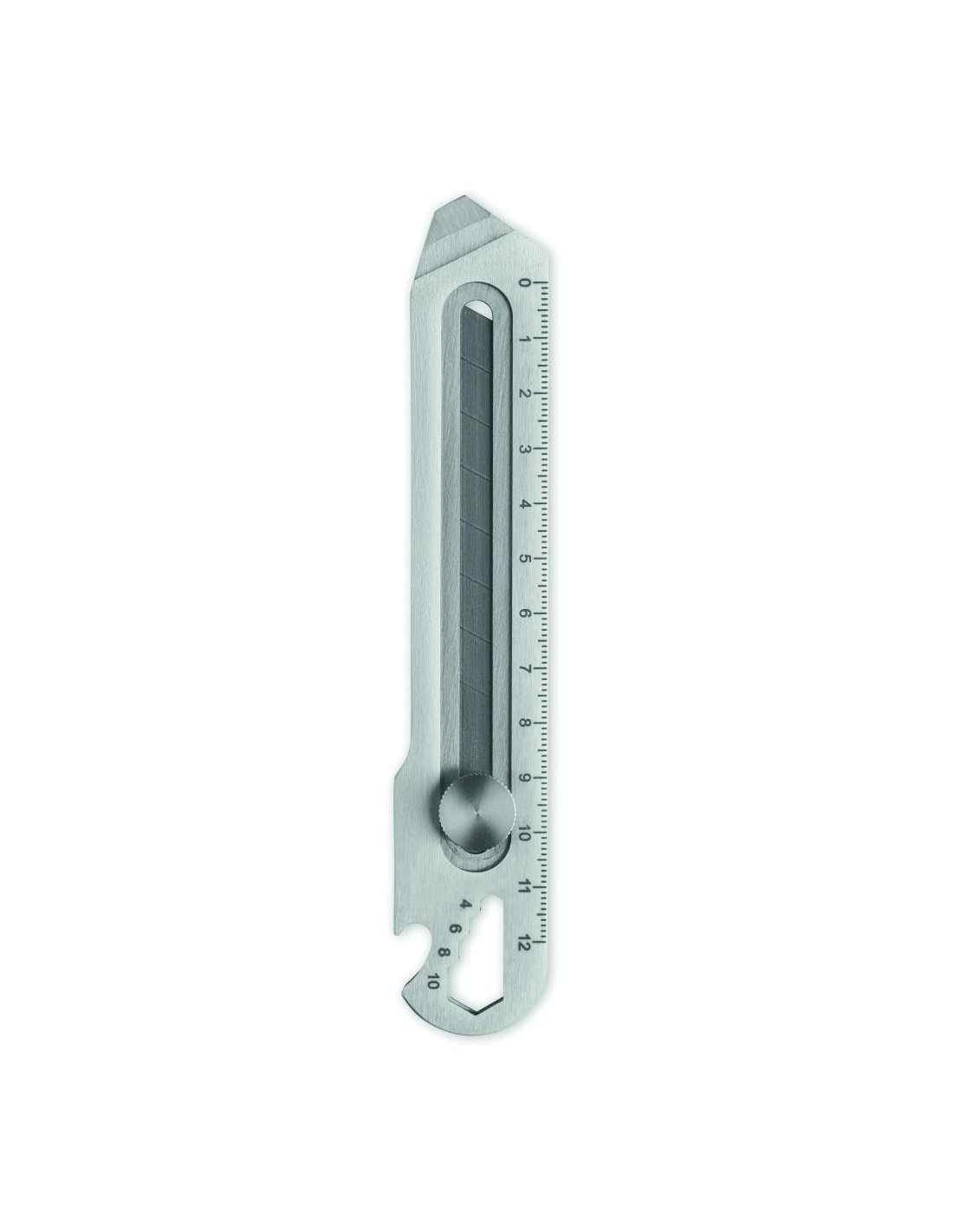 Cúter retráctil de acero inoxidable con 8 hojas de acero al carbono, abridor de botellas, llave inglesa y regla.