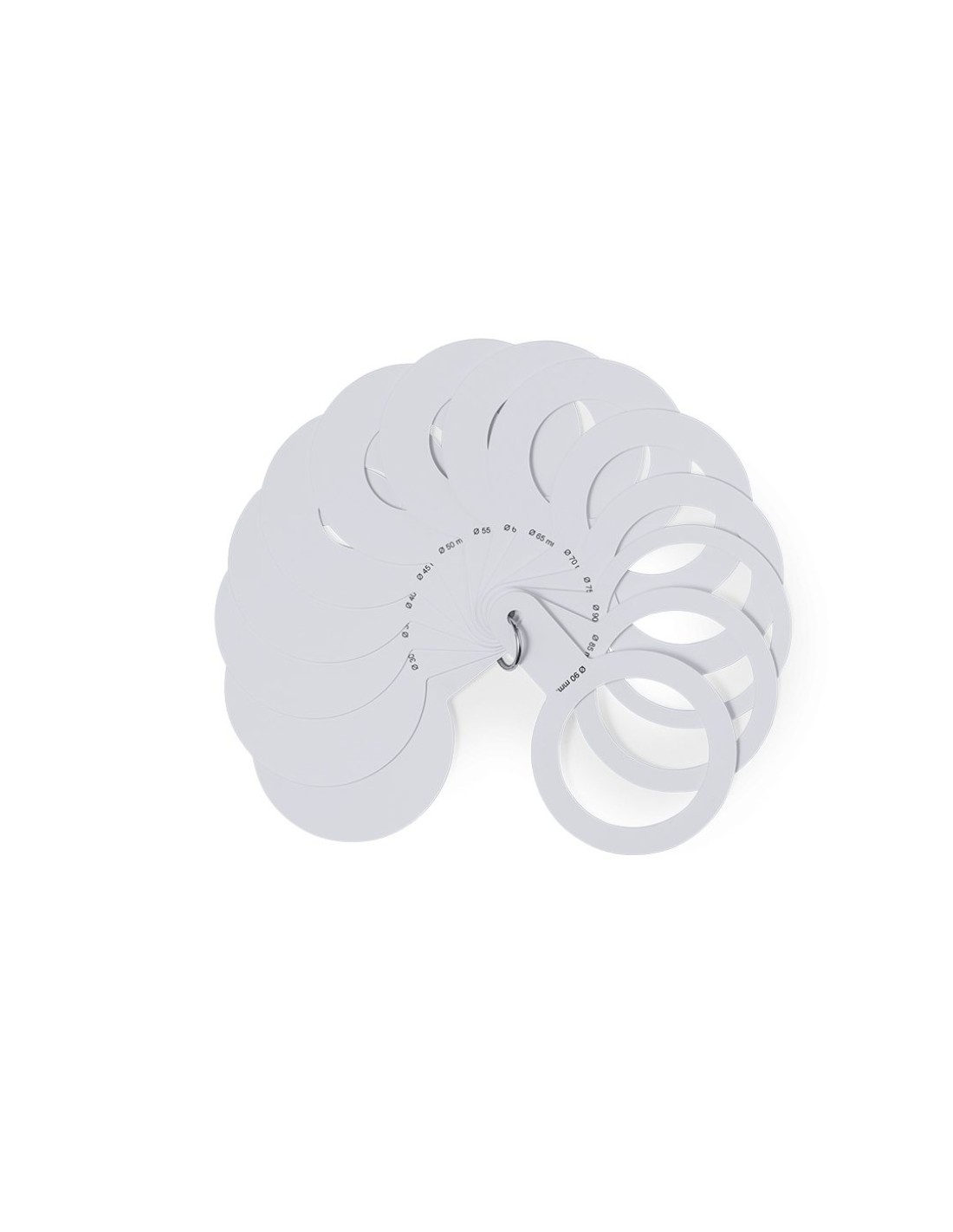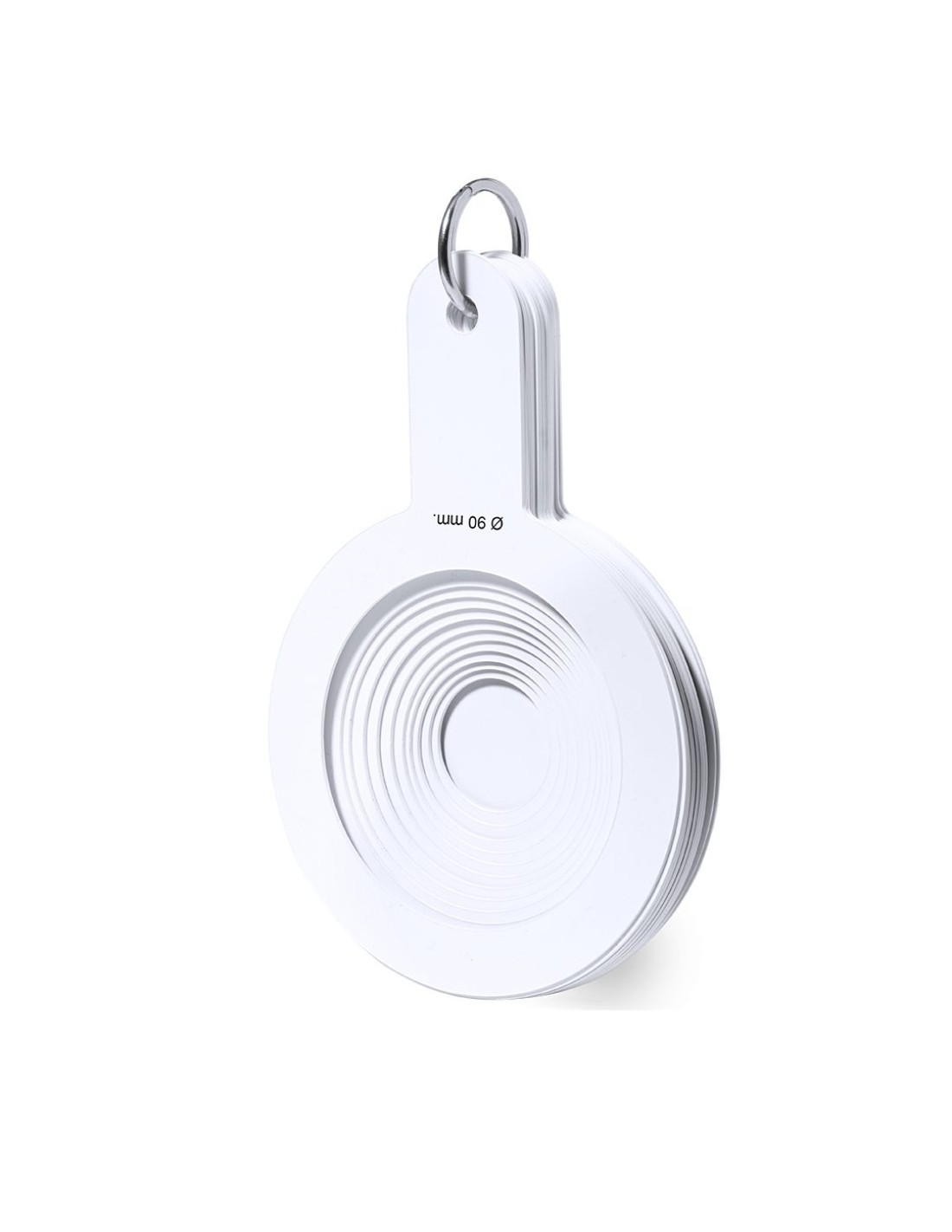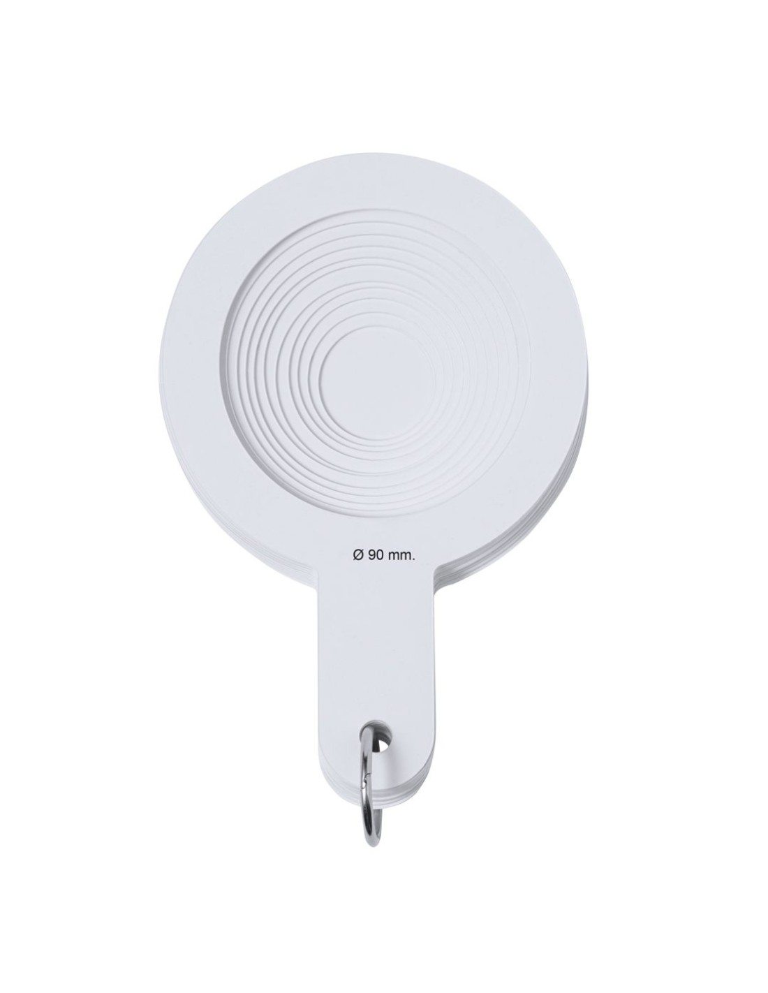 Calibrador manual fabricado en resistente PP. Para diá metros desde 30mm hasta 90mm, perfecto para la medición y clasificación a tiempo real y según tamaños. Cuenta con 8 plantillas que van aumentando gradualmente cada 2mm, una de ellas con superficie plana para marcaje. Unidos por una práctica anilla de transporte.