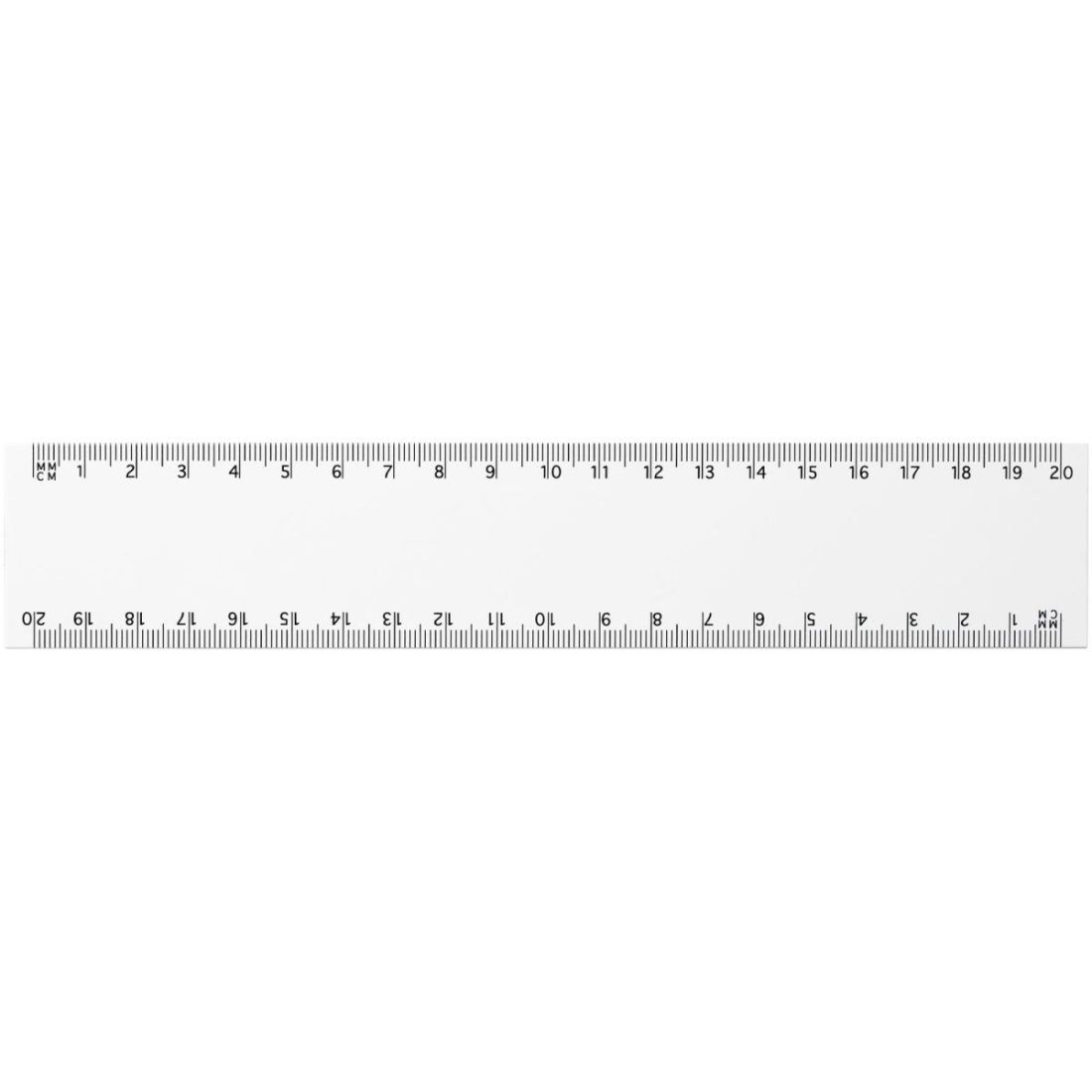 Regla flexible de plástico ligero hecha de papel sintético de 450 g/m² con marcas tanto en pulgadas como en centímetros. Tenga en cuenta que las marcas de la regla se imprimen junto con los logos, las reglas estándar de stock no llevarán marcas.