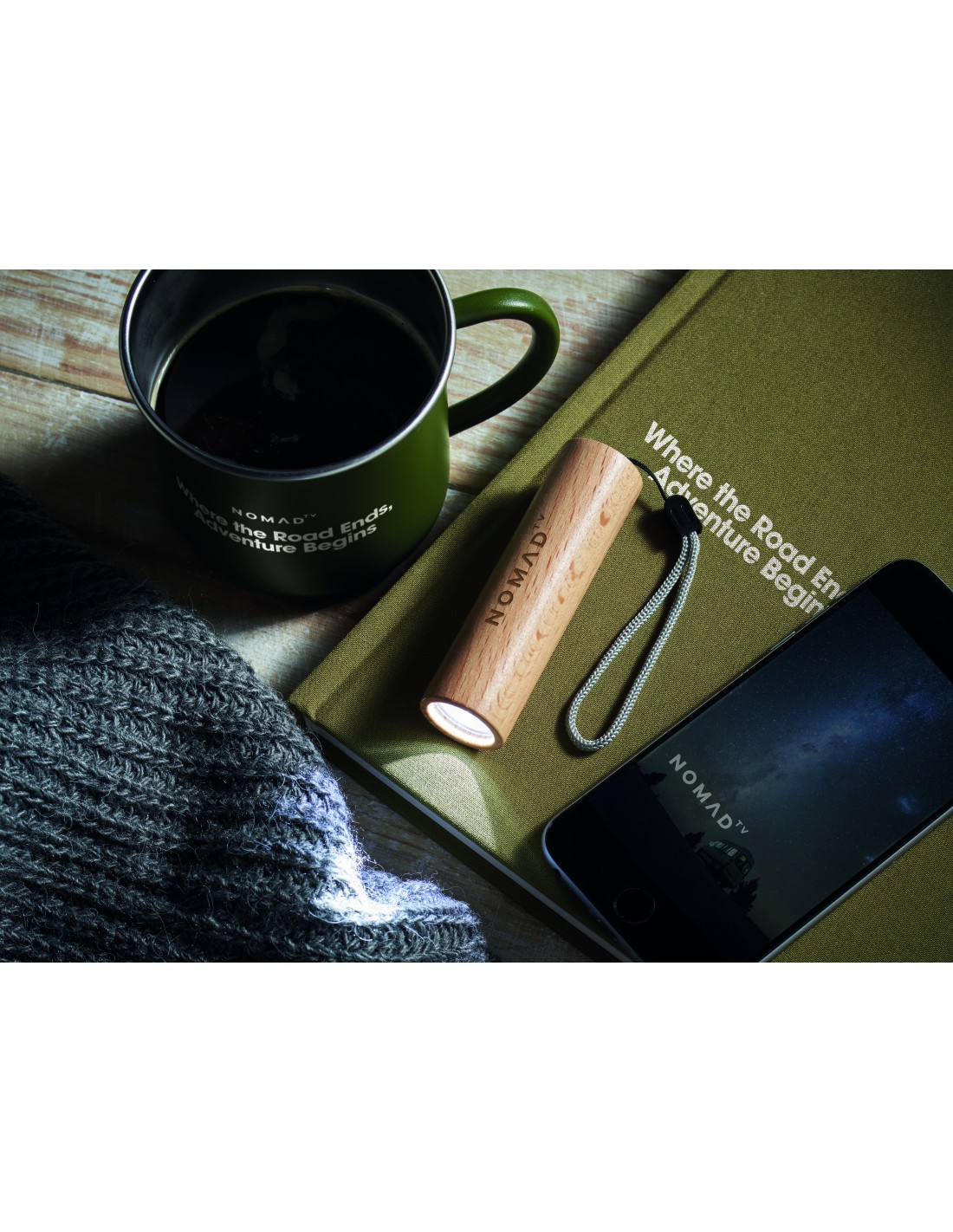 Linterna recargable de madera de haya con luz de 5W 70 LUM ( 1 LED). 3 ajustes de luz y correa de mano. Incluye batería de 300 mAh.
