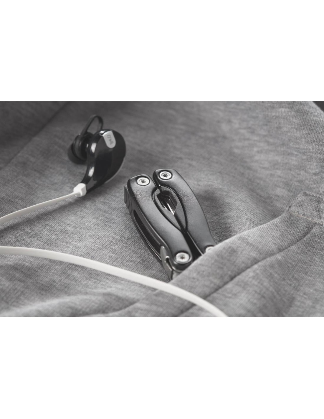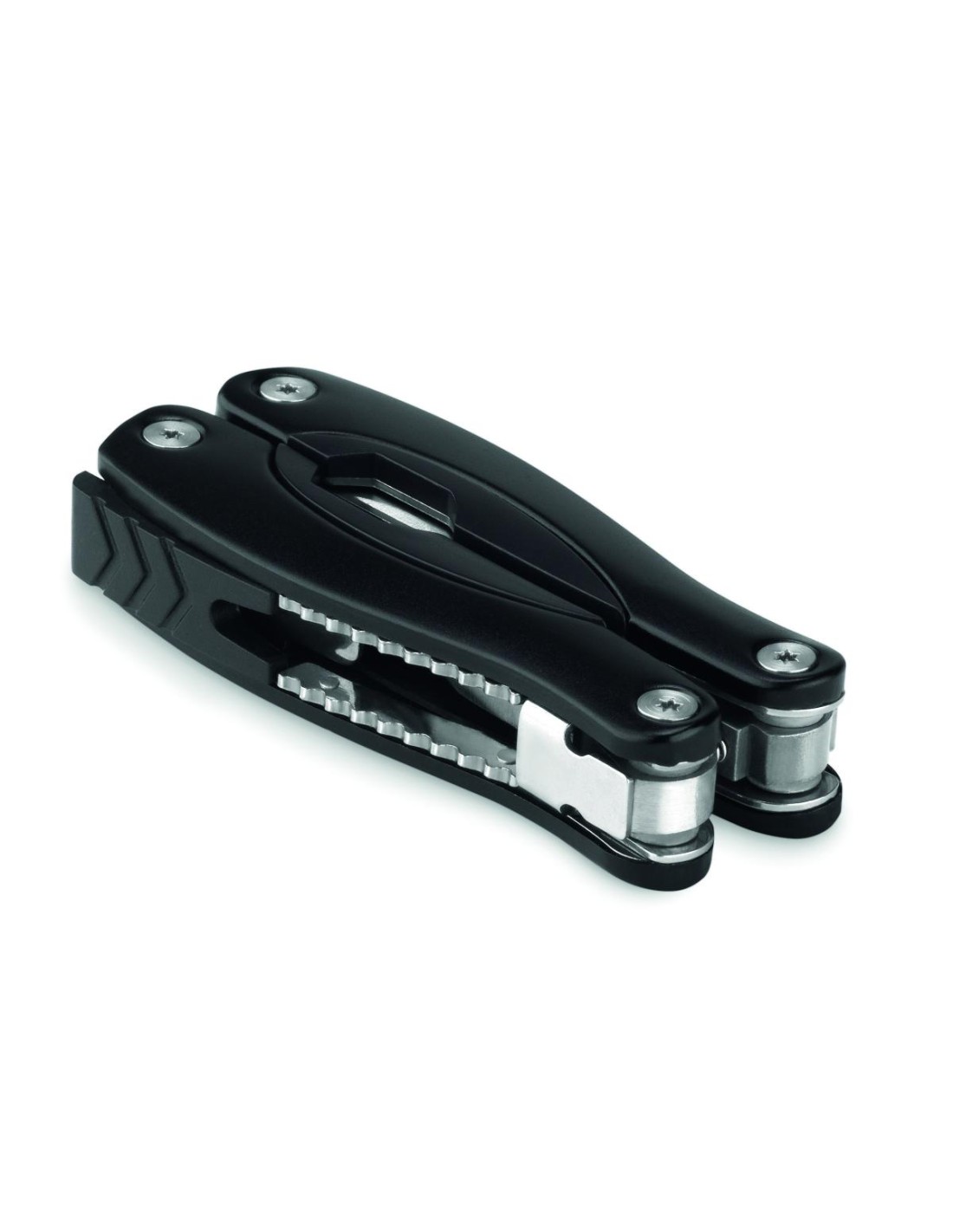 Multikit plegable de alicates y 9 herramientas presentado en funda de poliéster 600D.