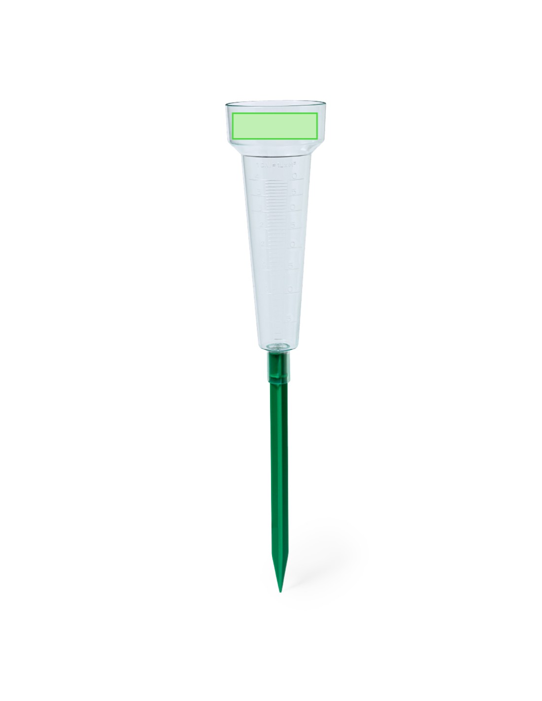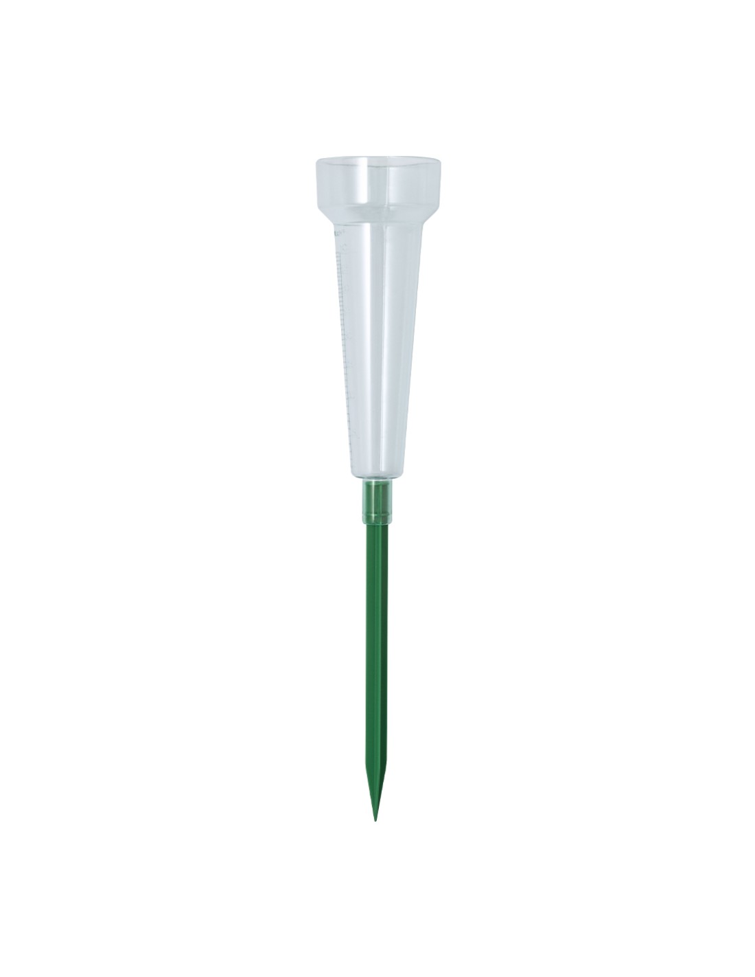 Pluviómetro de 40l/m2 con cuerpo de acabado transparente y resistente pincho de fijación.