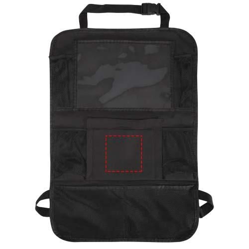 Organizador para el asiento trasero del coche con múltiples bolsillos de malla para guardar objetos esenciales como tentempiés, juguetes o cantimploras, además de una ventana de PVC para una tableta. Se fija con facilidad al asiento delantero y ayuda a mantener el coche ordenado. Es ideal para familias, viajes por carretera o uso diario.