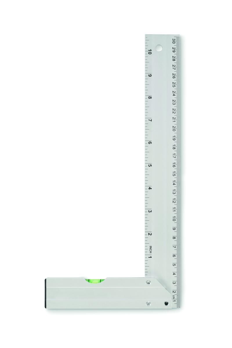 Escuadra de aluminio con nivel de burbuja. Regla de 30 cm.