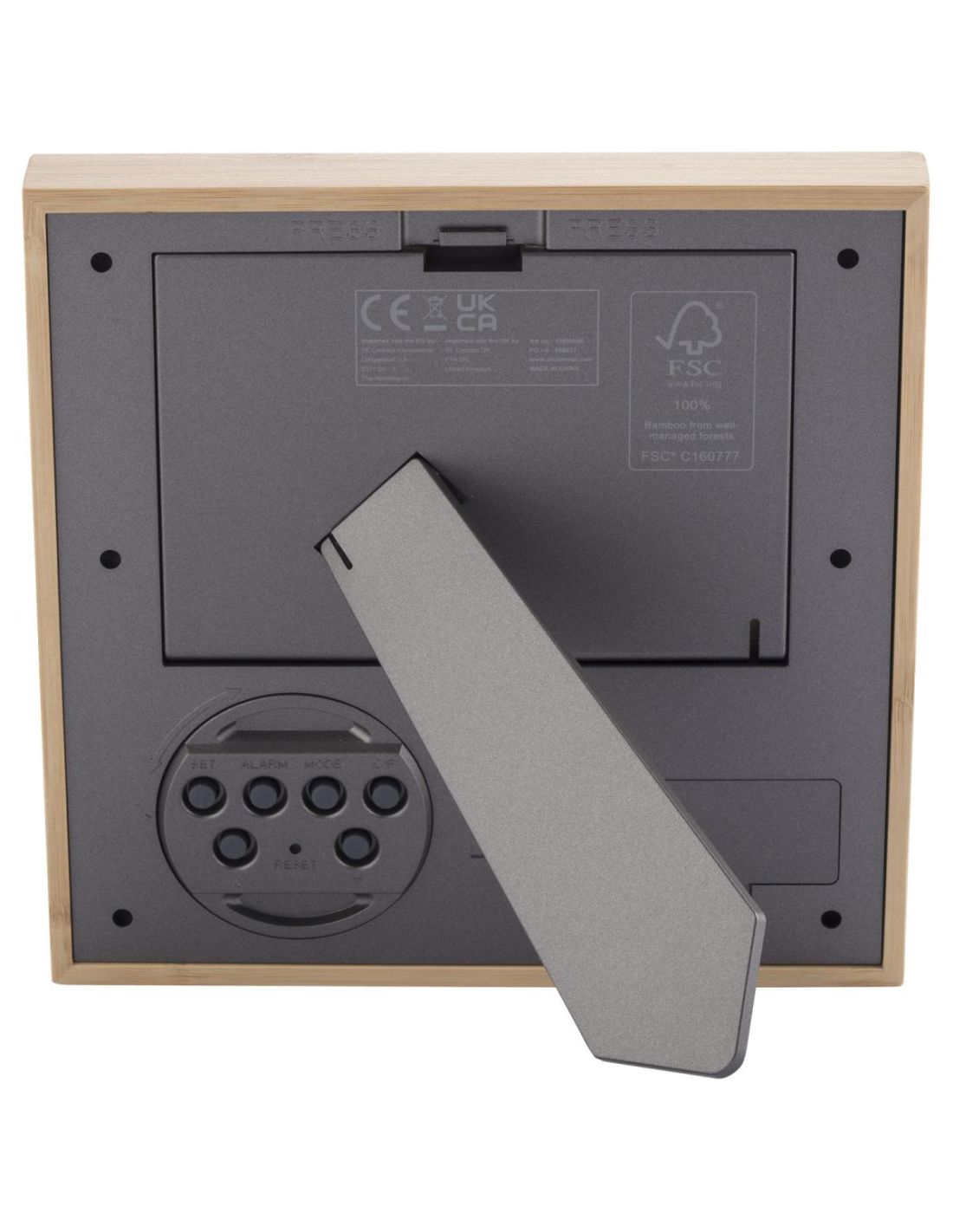 El marco de fotos de bambú Sasa proporciona un complemento elegante y funcional para su hogar u oficina. Con la carcasa principal de bambú obtenido de forma responsable y la carcasa trasera de plástico reciclado, este marco de fotos irradia elegancia natural al tiempo que promueve la sostenibilidad. El marco tiene cristal LCD que garantiza una visualización clara y nítida de la hora, el mes, la fecha, el día de la semana y la temperatura en modo normal. También cuenta con una función de alarma/repetición para ayudarte a comenzar el día a tiempo. El modo de recordatorio de cumpleaños le permite realizar un seguimiento de fechas importantes, mientras que el modo de temporizador es perfecto para cronometrar tareas o actividades. Además, el modo de apreciación musical ofrece una selección de hasta 7 canciones opcionales para su disfrute. El tamaño de la ventana fotográfica es de 127 x 89 mm. Incluye 2 pilas AA. Se entrega con caja de regalo de papel kraft y manual de instrucciones.